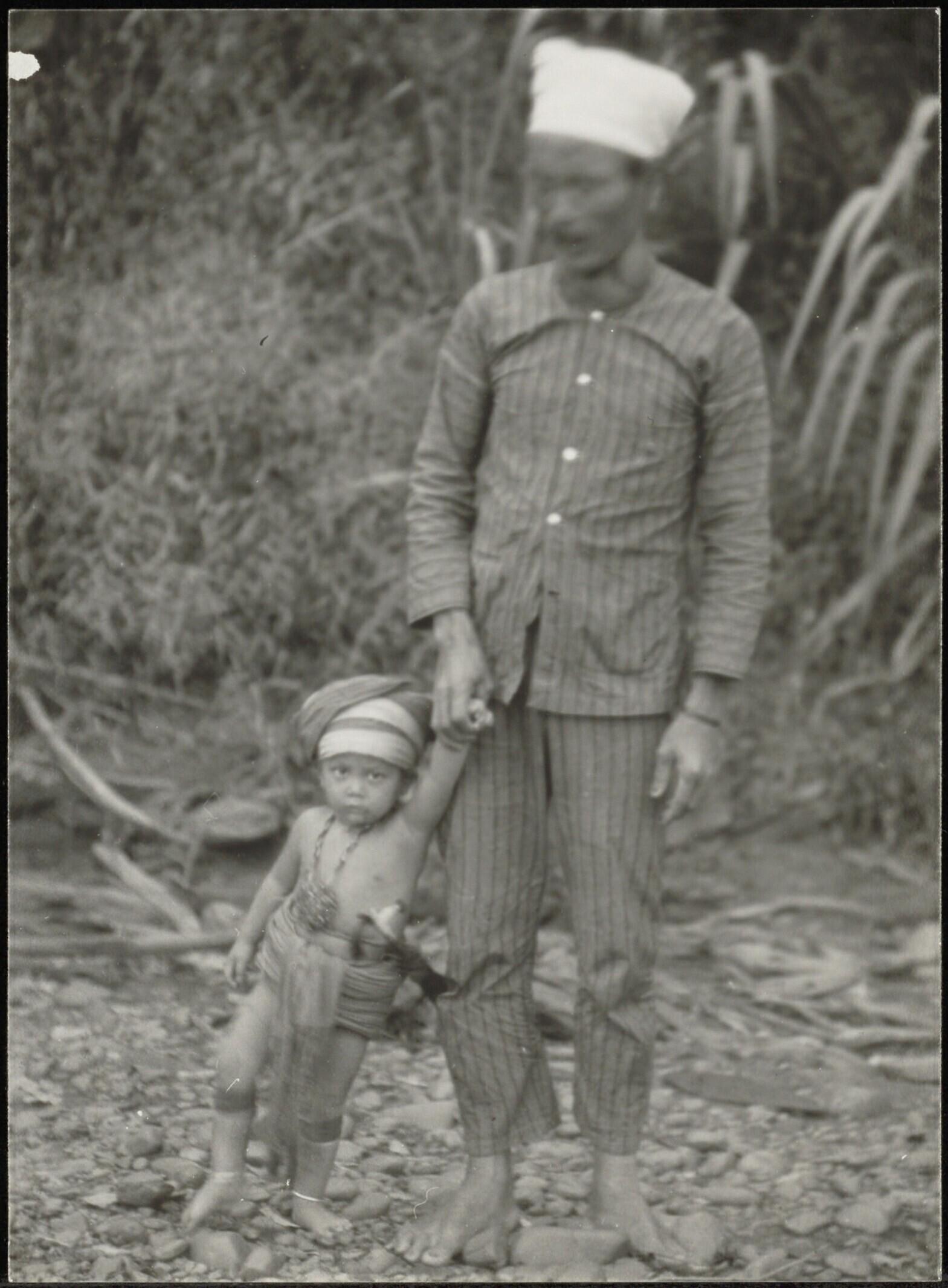 Groepsportret van het zoontje van de Kayan Dayak man...