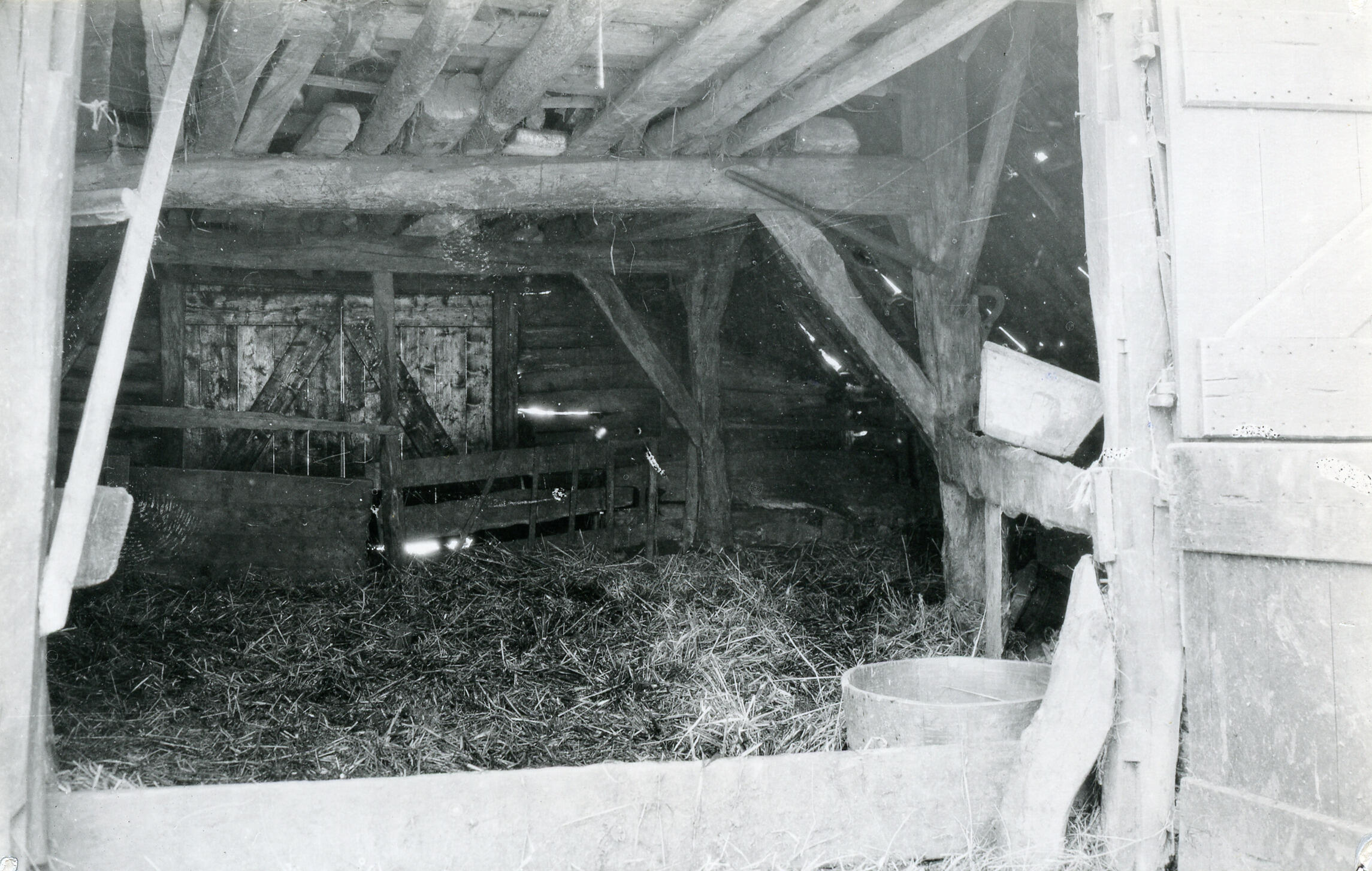 Interieur van een schaapskooi, Rhenen, 1938 (zwart-w...