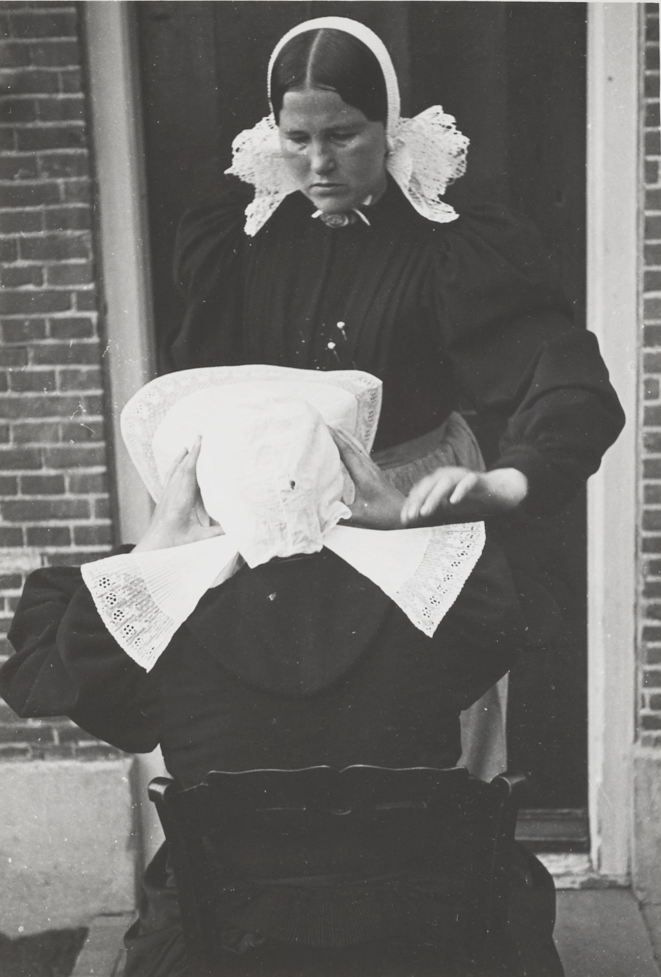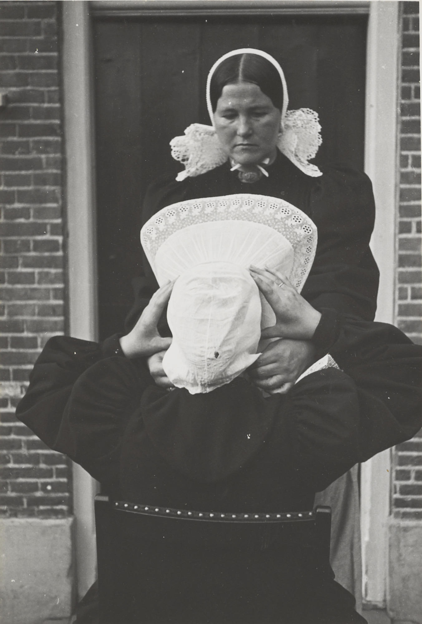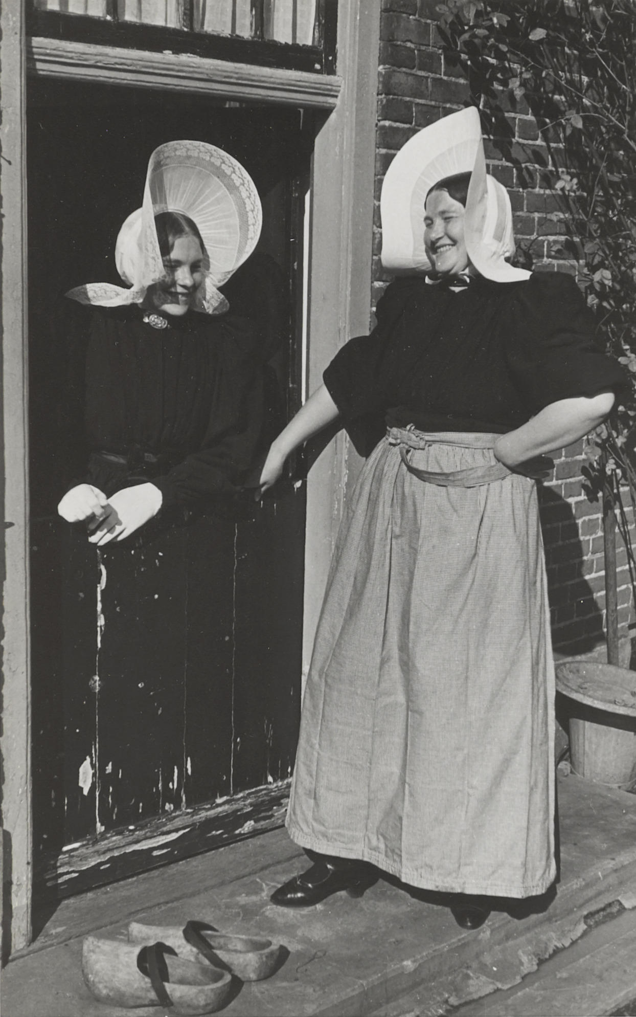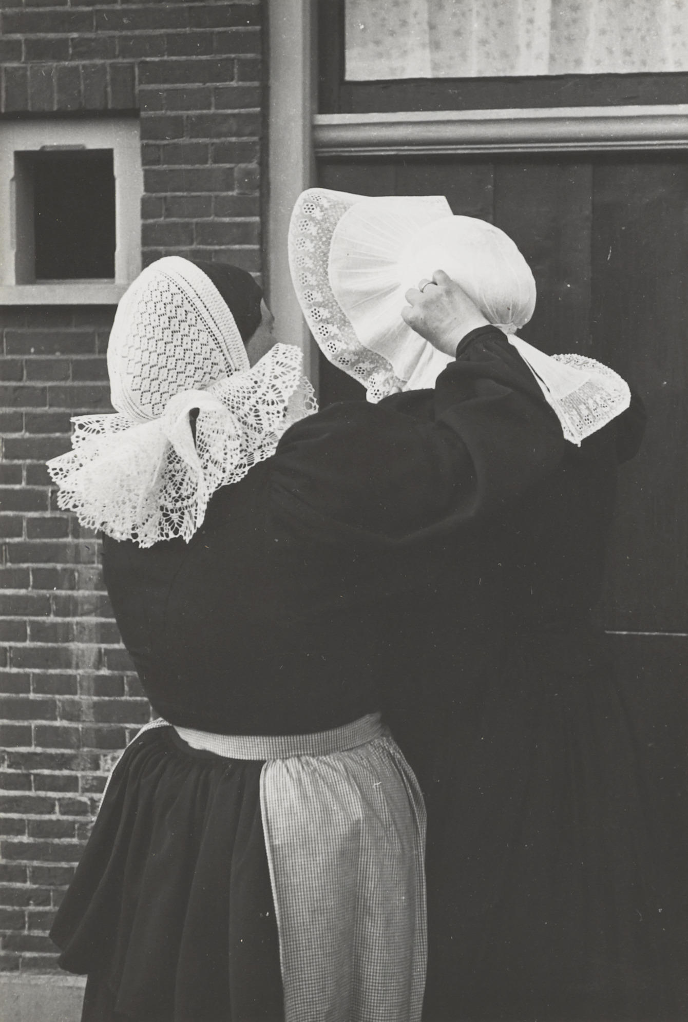Vrouwen in streekdracht, Huizen, 1945 (zwart-wit foto)