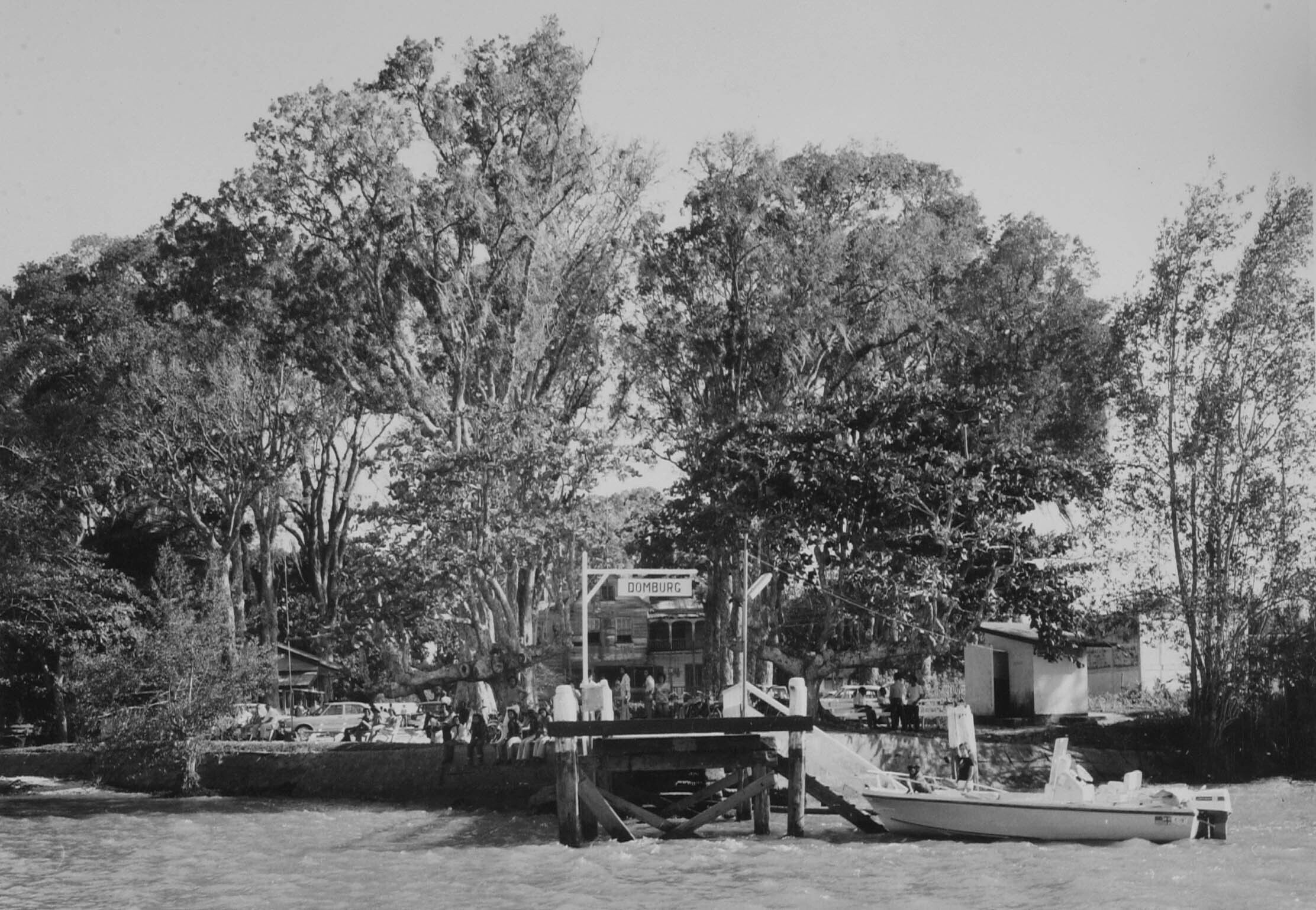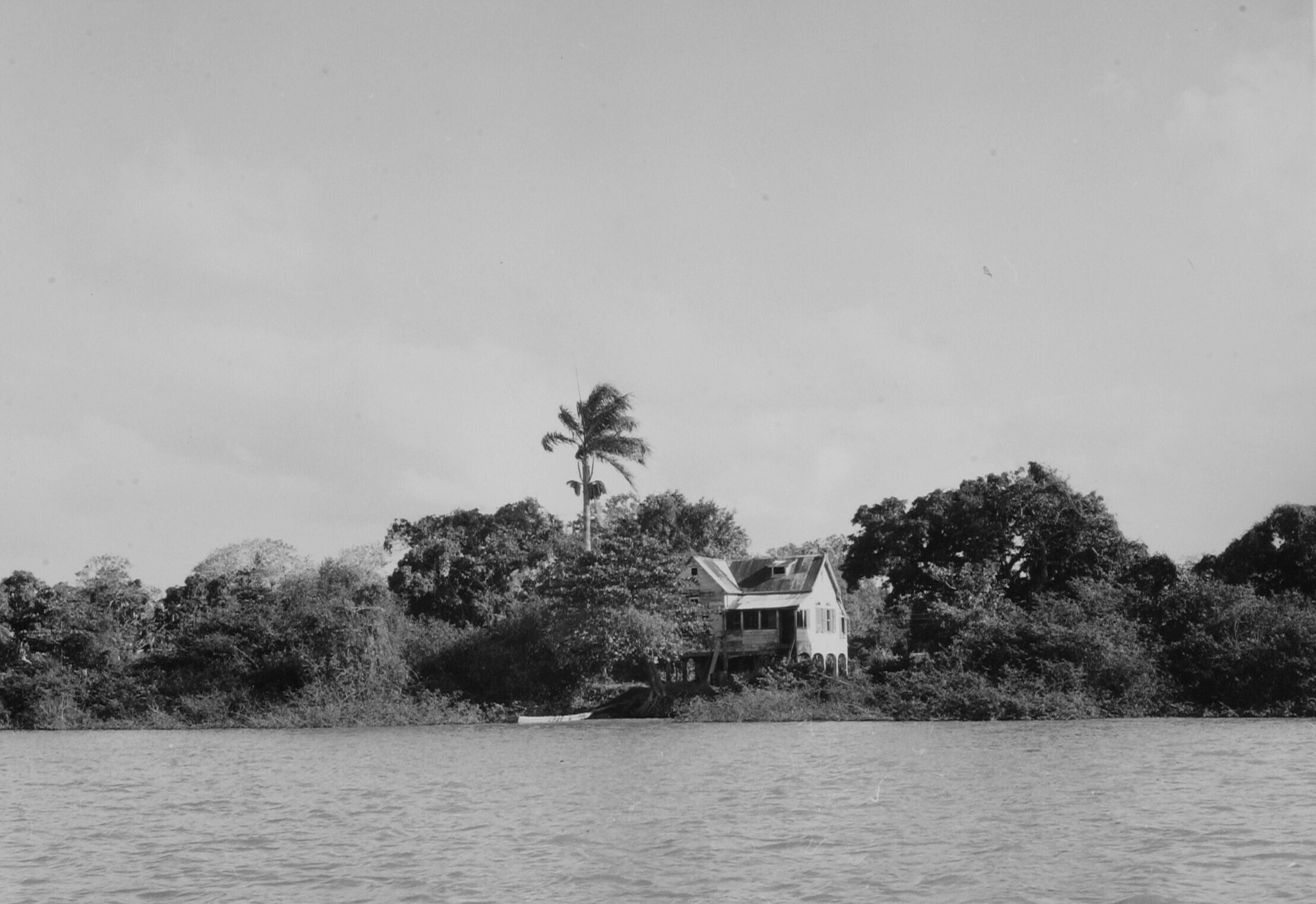 Vervallen Domburg aan de Surinaamse rivier. Alleen i...