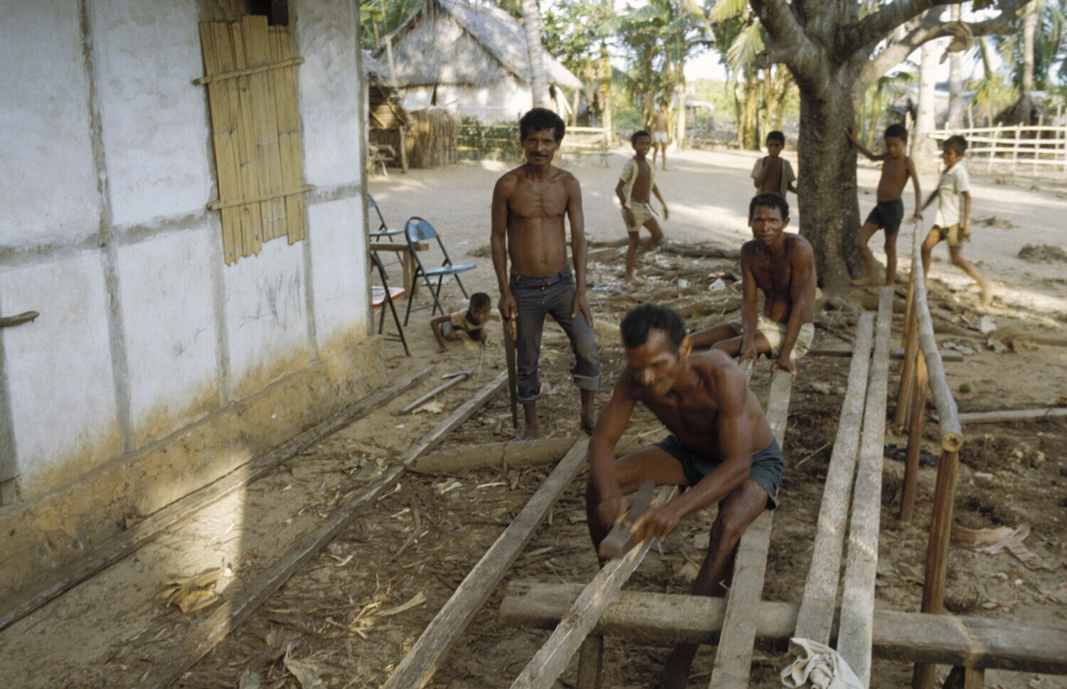 De timmerman aan het werk in Kandar op Selaru, Moluk...