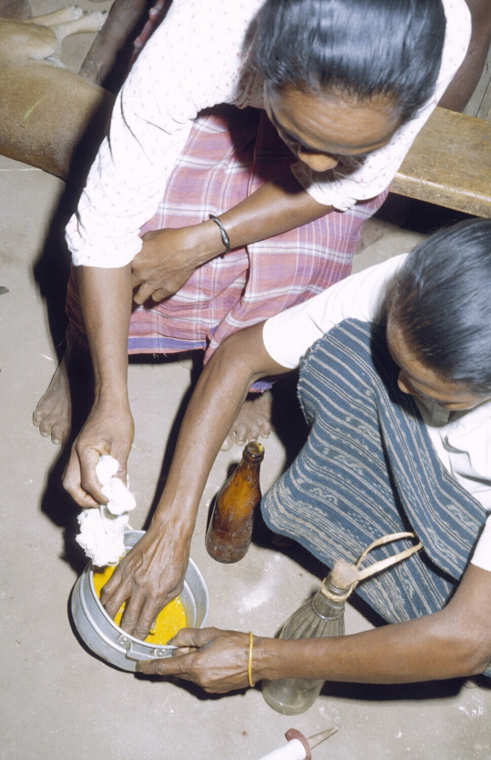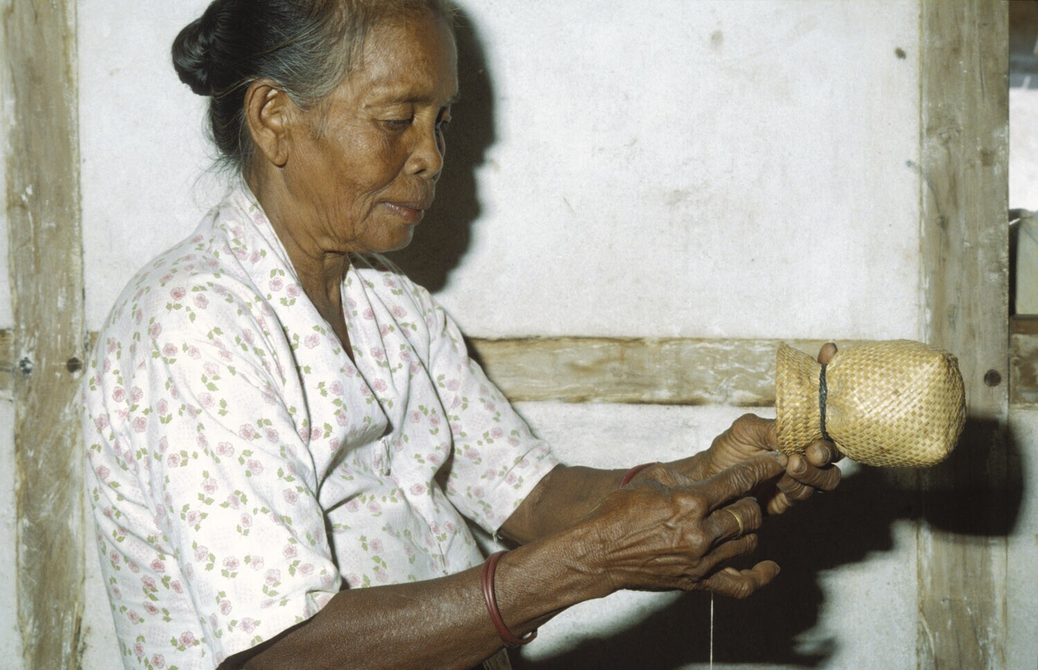 Het vlechten van kleine voorraadmandjes voor de kato...
