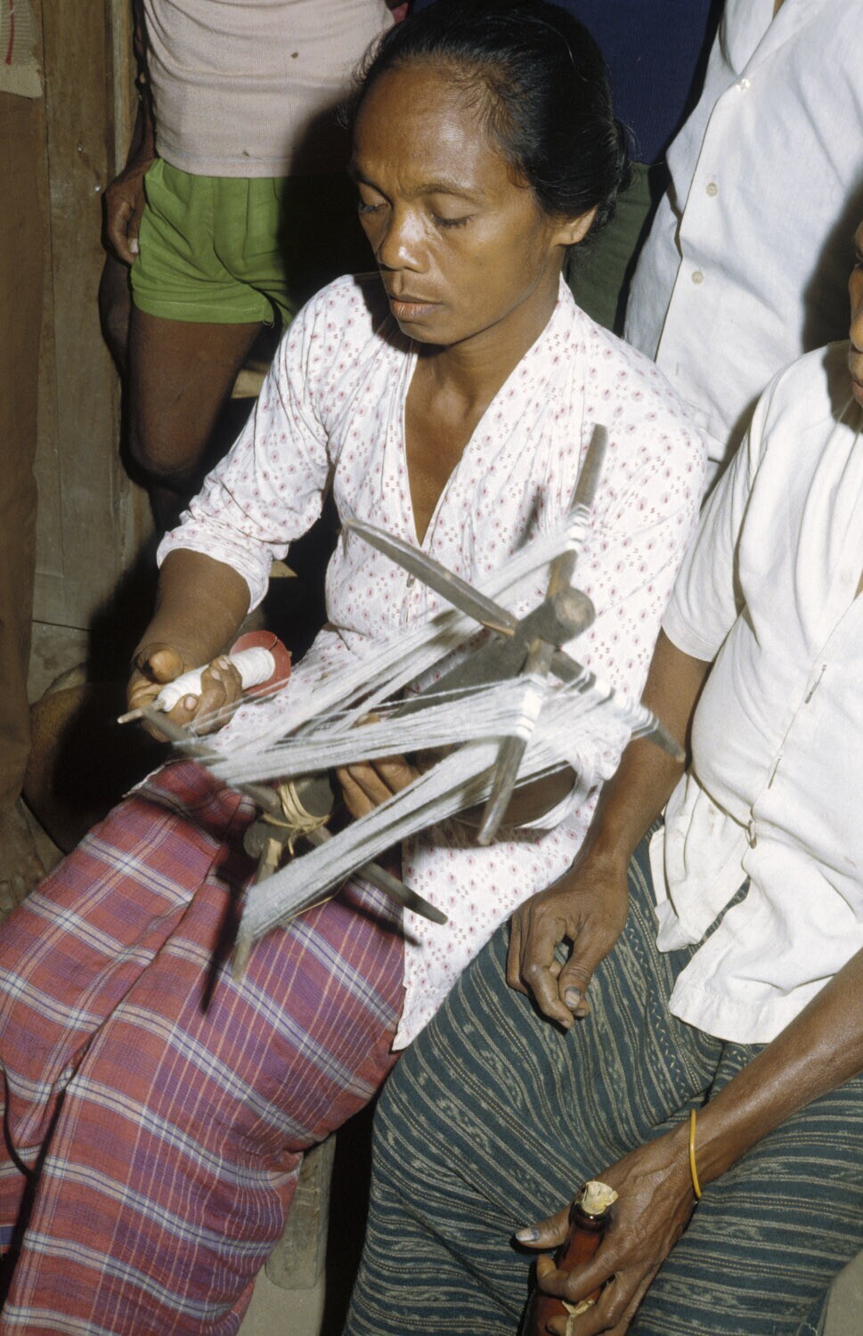 Het eigenlijke ikatten: het afbinden van de kettingd...