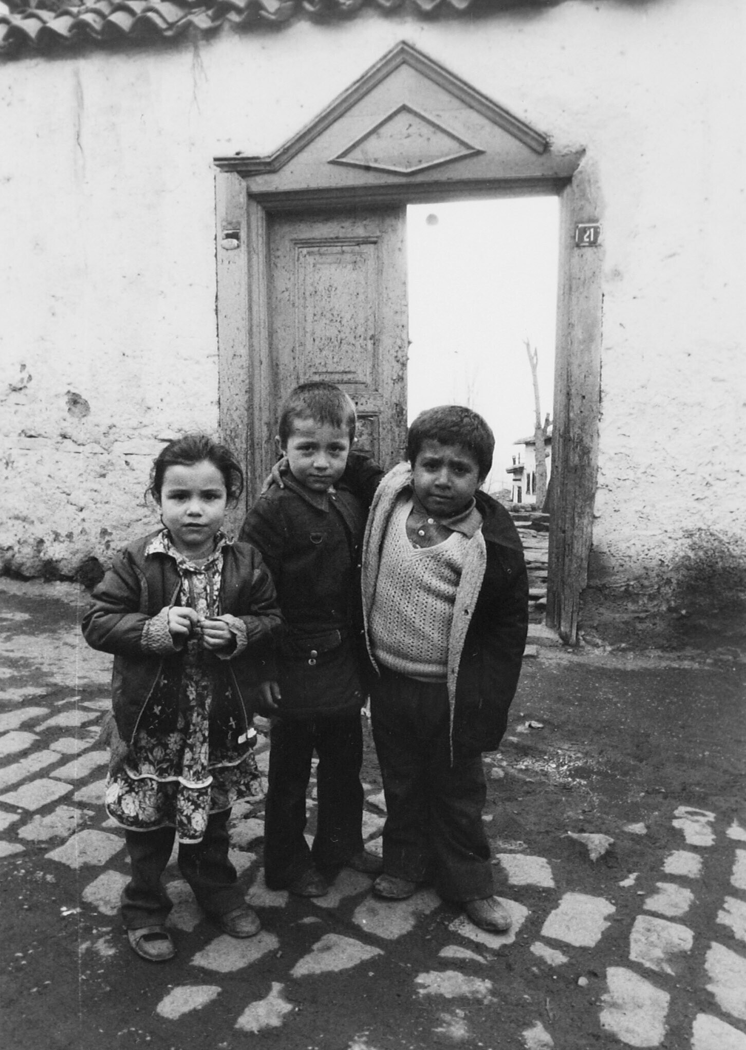 Een grijsaard met kinderen in een klein bergdorpje