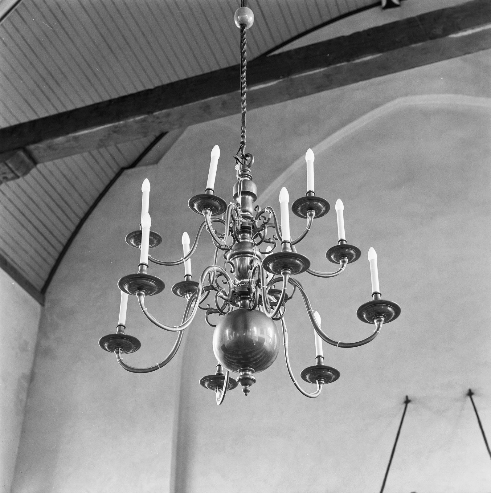 Interieur, koperen kroonluchter