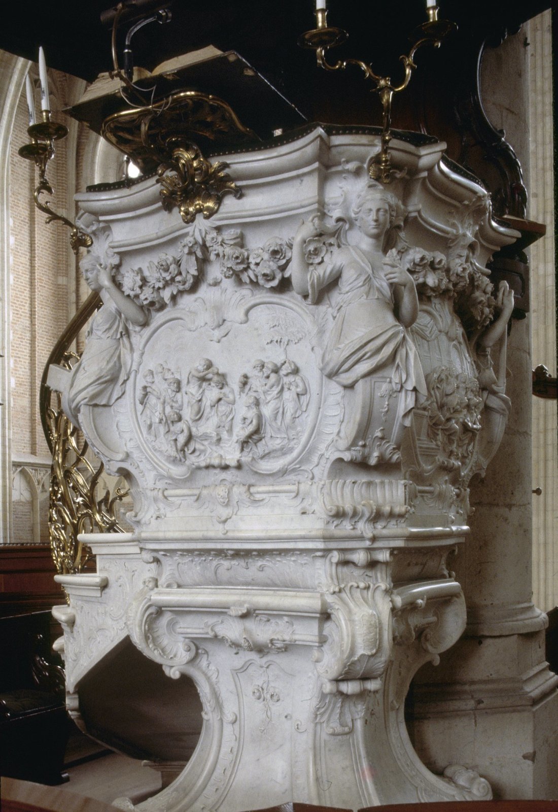 Interieur,kuip van de preekstoel (marmer)