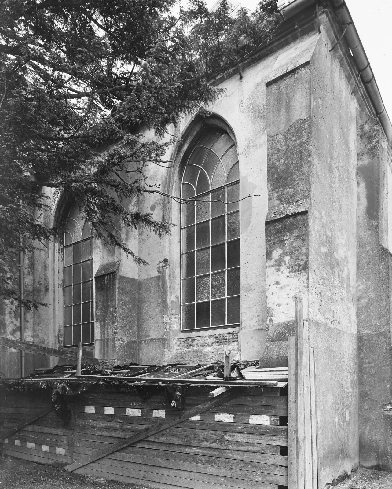 Hervormde kerk in de steigers vanuit het oosten