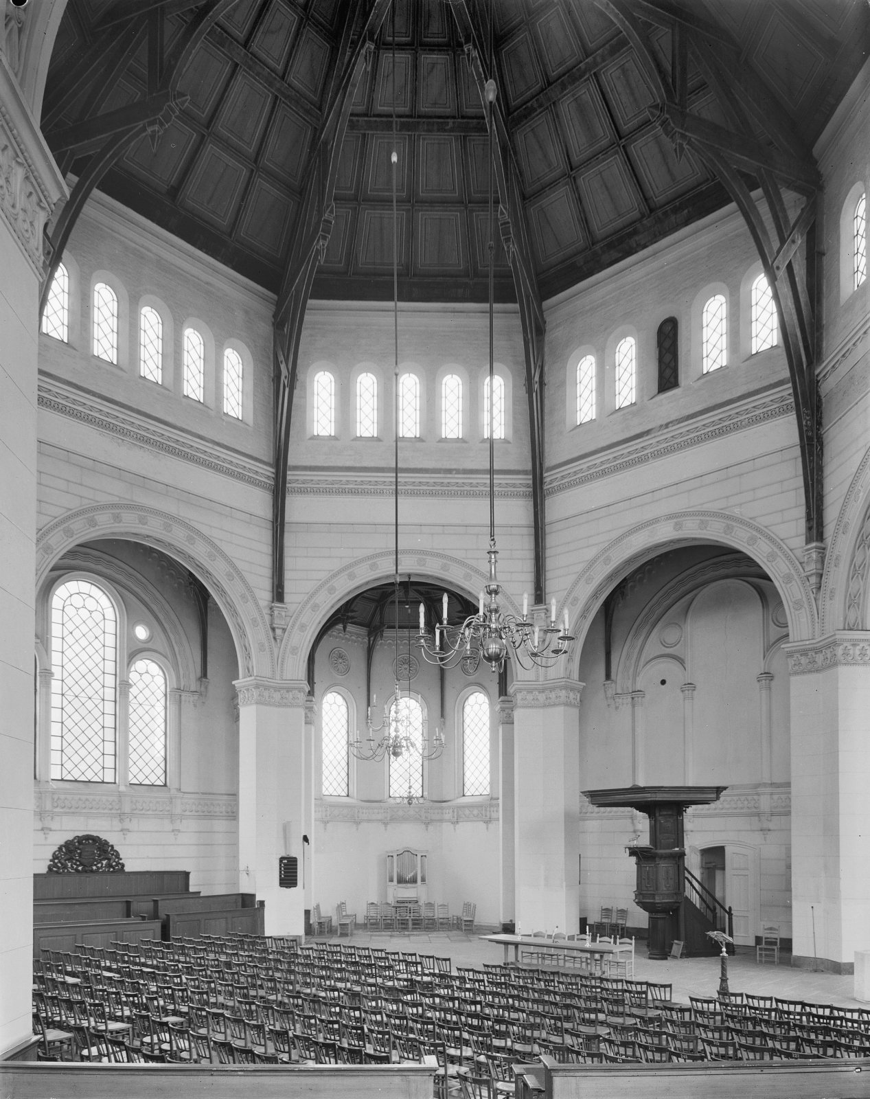 Interieur met preekstoel