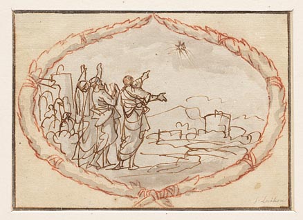 De drie wijzen uit het oosten zien de ster boven Bet...