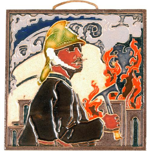 Wandtegel: "65 jarig jubileum brandmeesters, 1885-19...