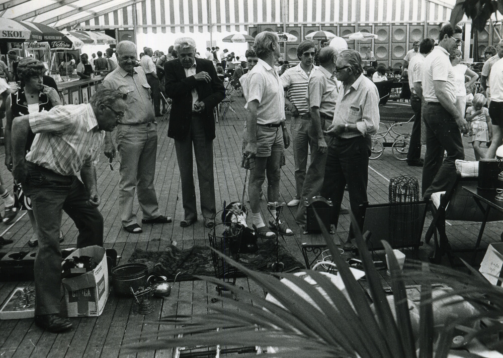 Zwart-wit foto van veiling tijdens de kadefeesten in...
