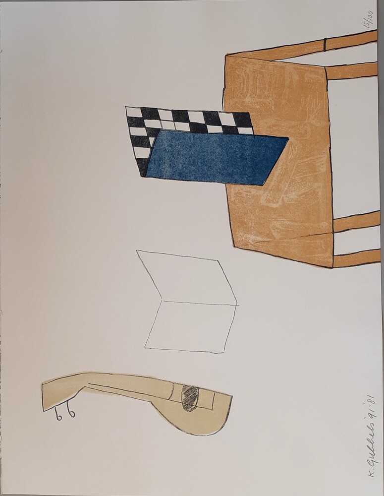 Litho op papier gedrukt voorstellend een tafel, scha...