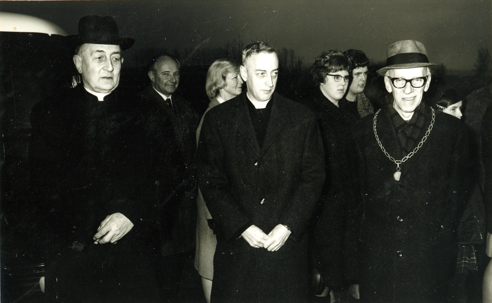 Zwart-wit foto van de installatie van pastoor J.H. B...