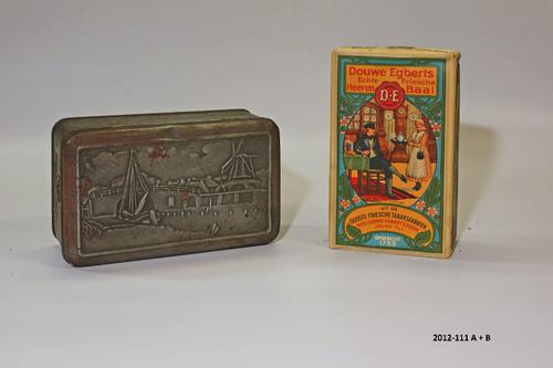 Blik met een pakje tabak 'Echte Friesche Heeren Baai'
