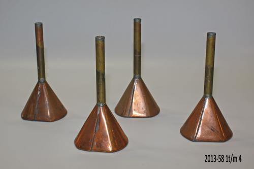 Vier maal koperen poot (onderstuk en pijpje) van sno...