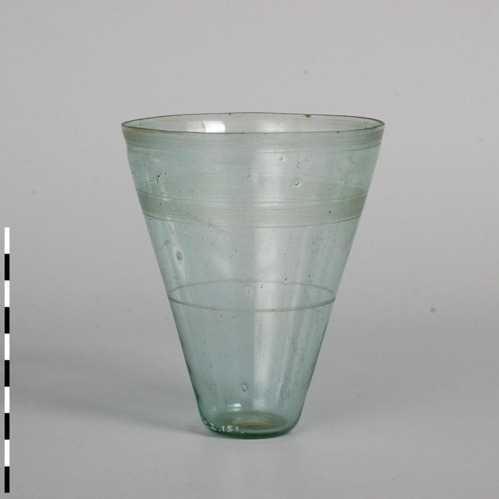 Beker van helder doorzichtig glas uit de Romeinse tijd