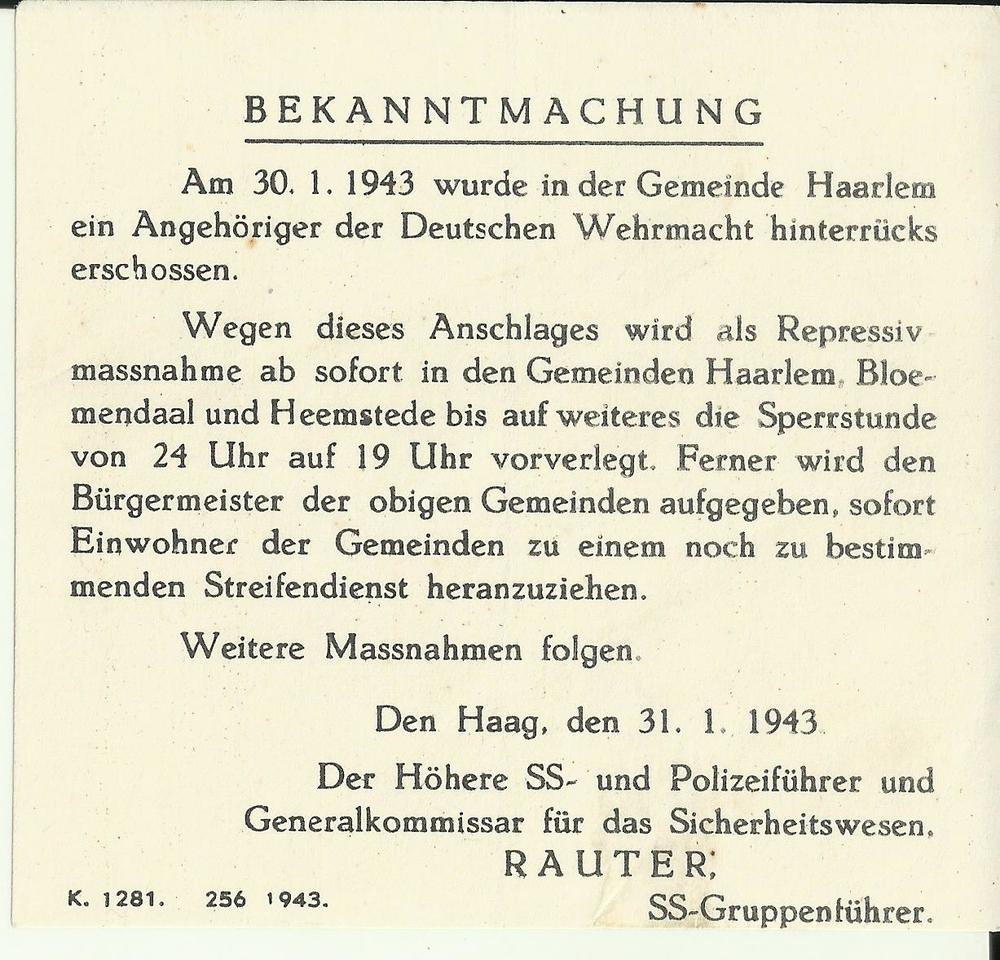 Bekanntmachung doodgeschoten lid van de Deutschen We...