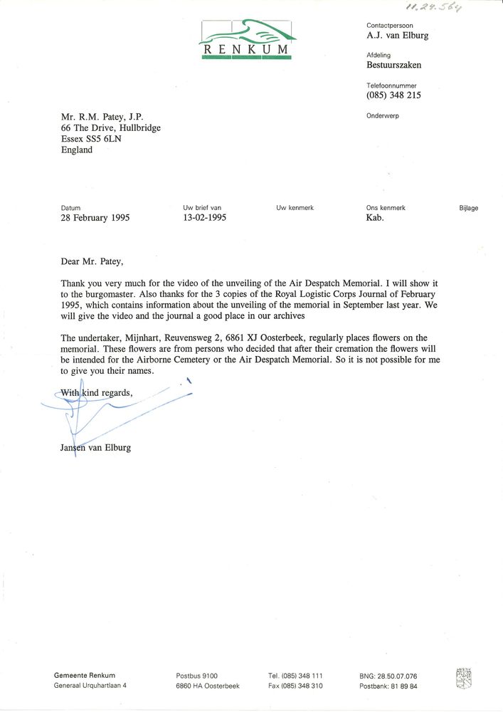 van de Gemeente Renkum aan R.M. Patey