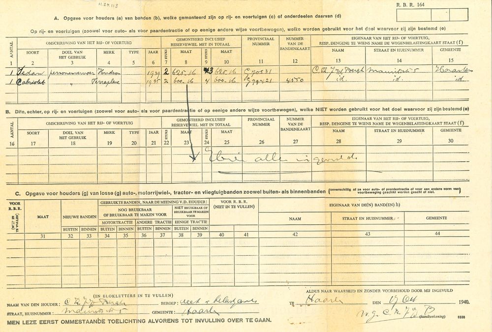 Formulier opgave bezit banden
