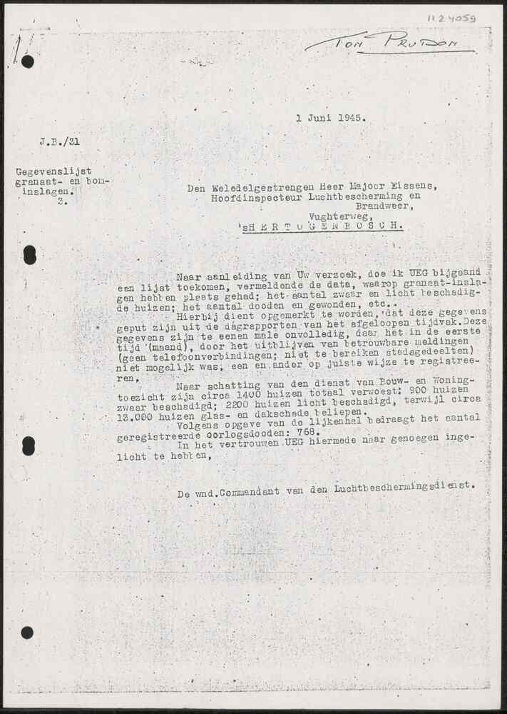 Rapport, Wnd Commandant van den Luchtbeschermingsdie...