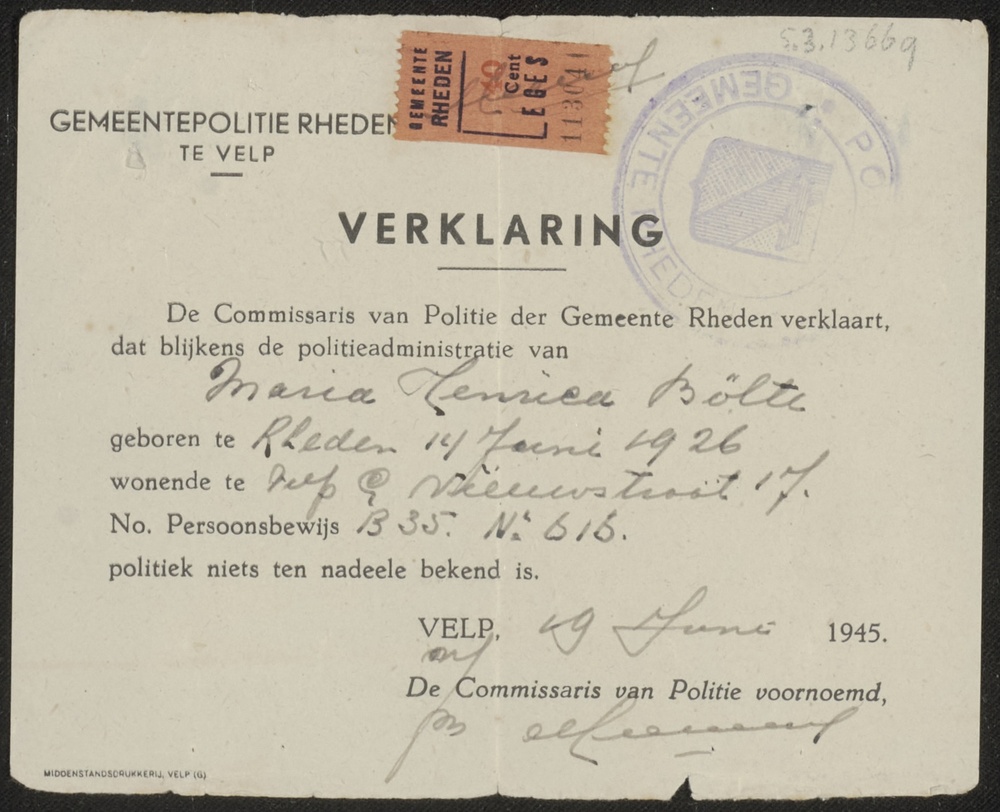 Verklaring van commissaris van politie Rheden .