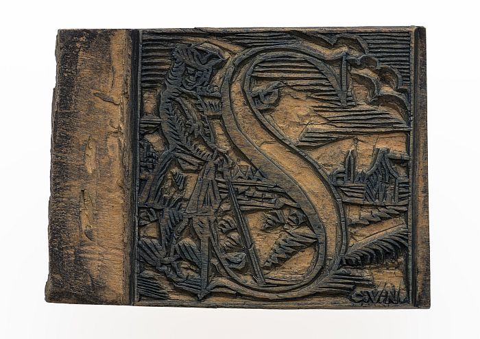 Houten cliché voor ganzenbordspel in de vorm van een...