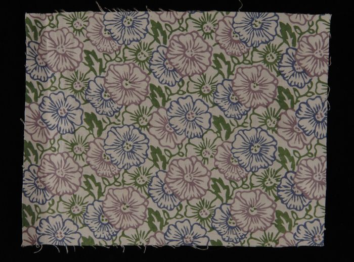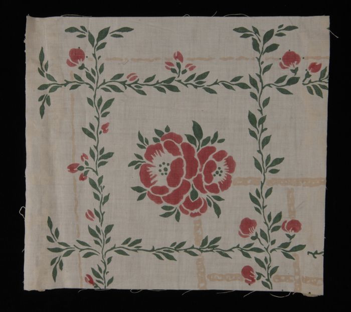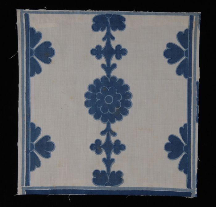 Stofstaal, katoen met tegelachtig dessin met bloemen...