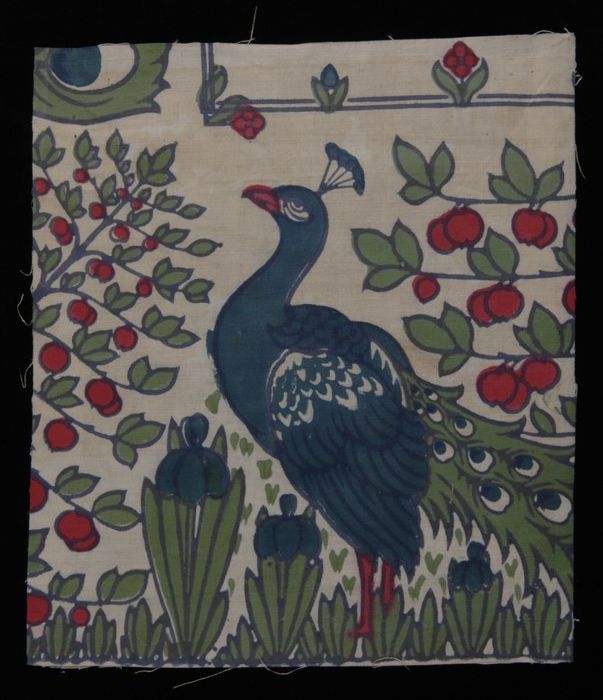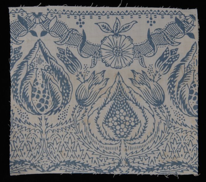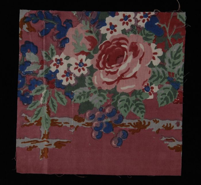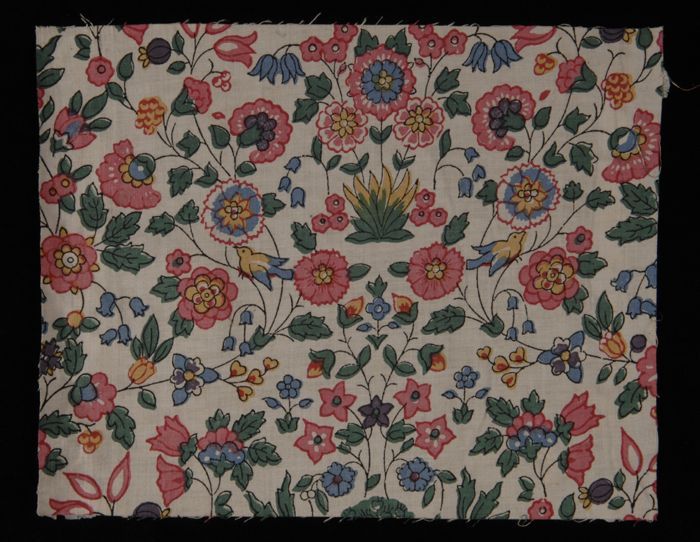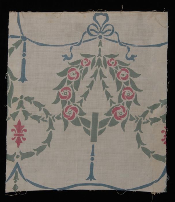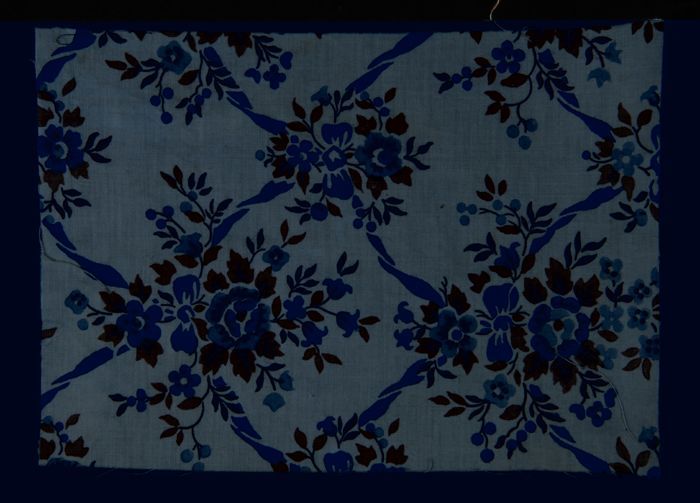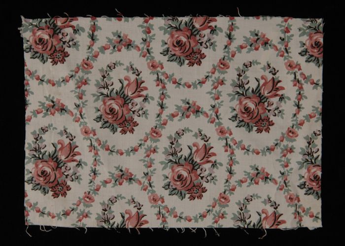 Stofstaal, katoen met dessin met bloemen en guirland...