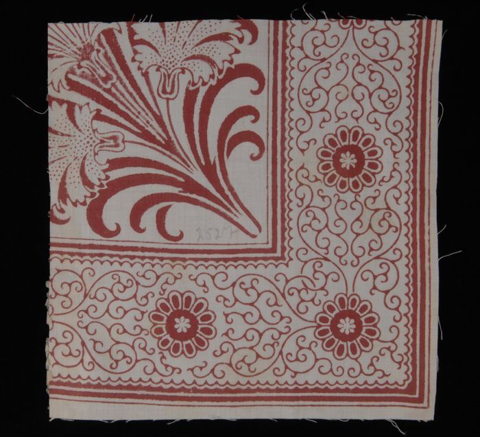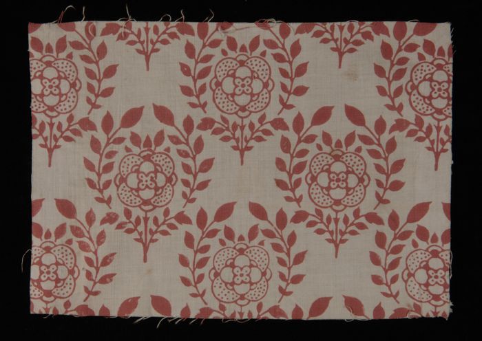 Stofstaal, katoen met dessin van bloemen in rood, Kr...