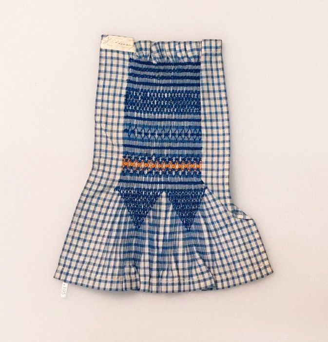 Smokwerk op blauw-wit geruit katoen gewerkt in blauw...