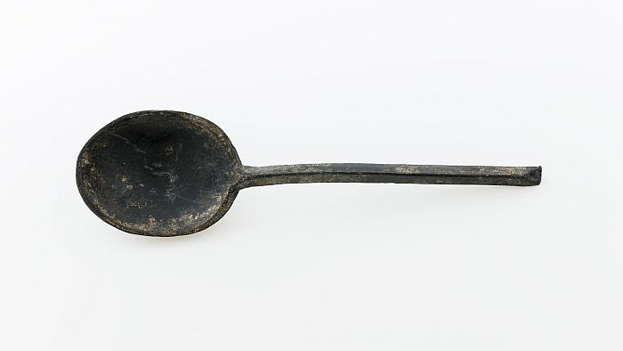 Lepel met eivormige bak, overgaand in steel met ruit...