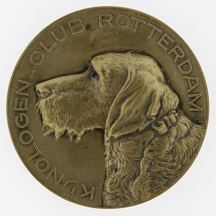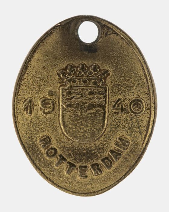 Geelkoperen hondenpenning, met gemeentewapen Rotterd...