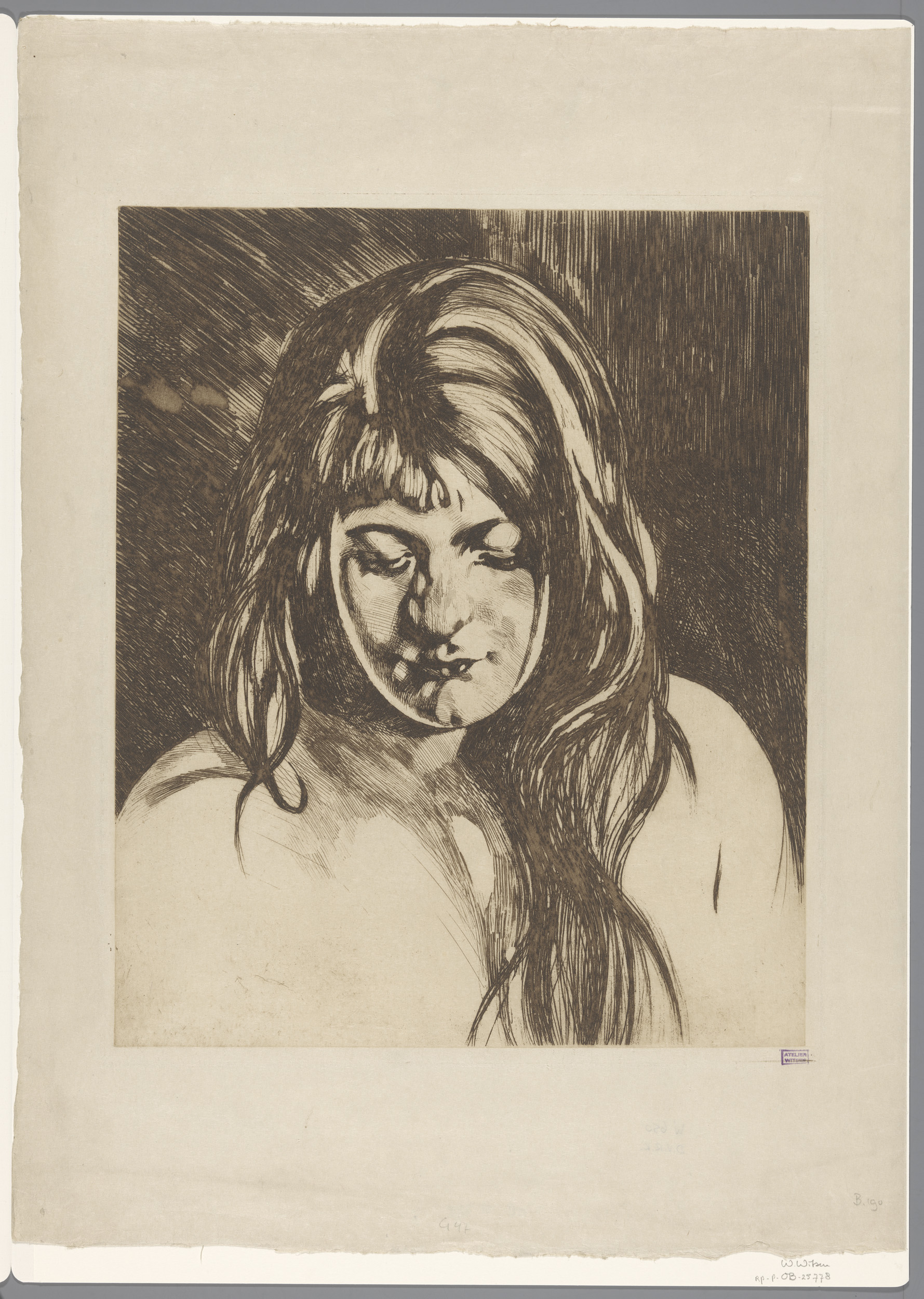 Hoofd van een vrouw met loshangend haar