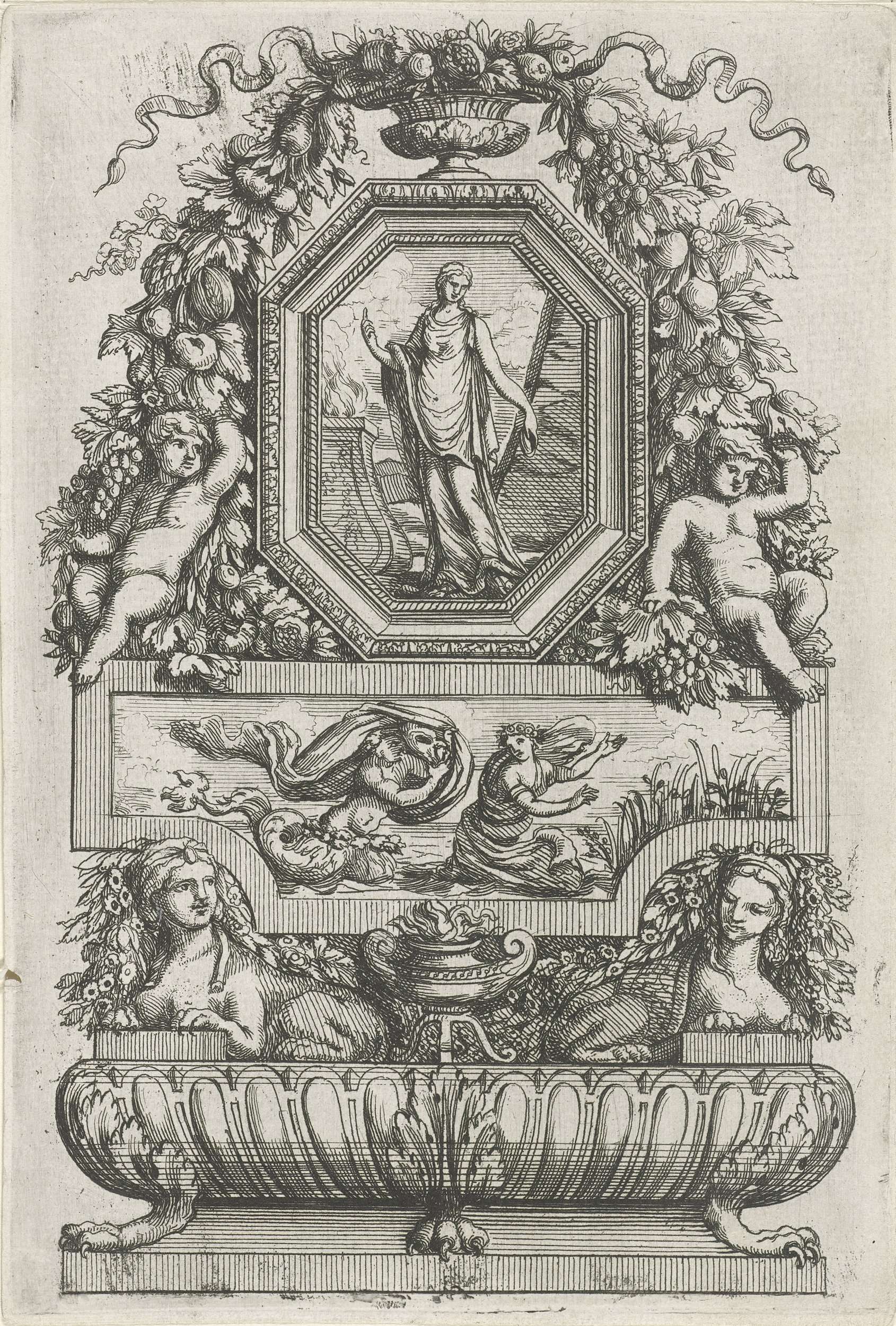 Reliëf ondersteund door twee sfinxen