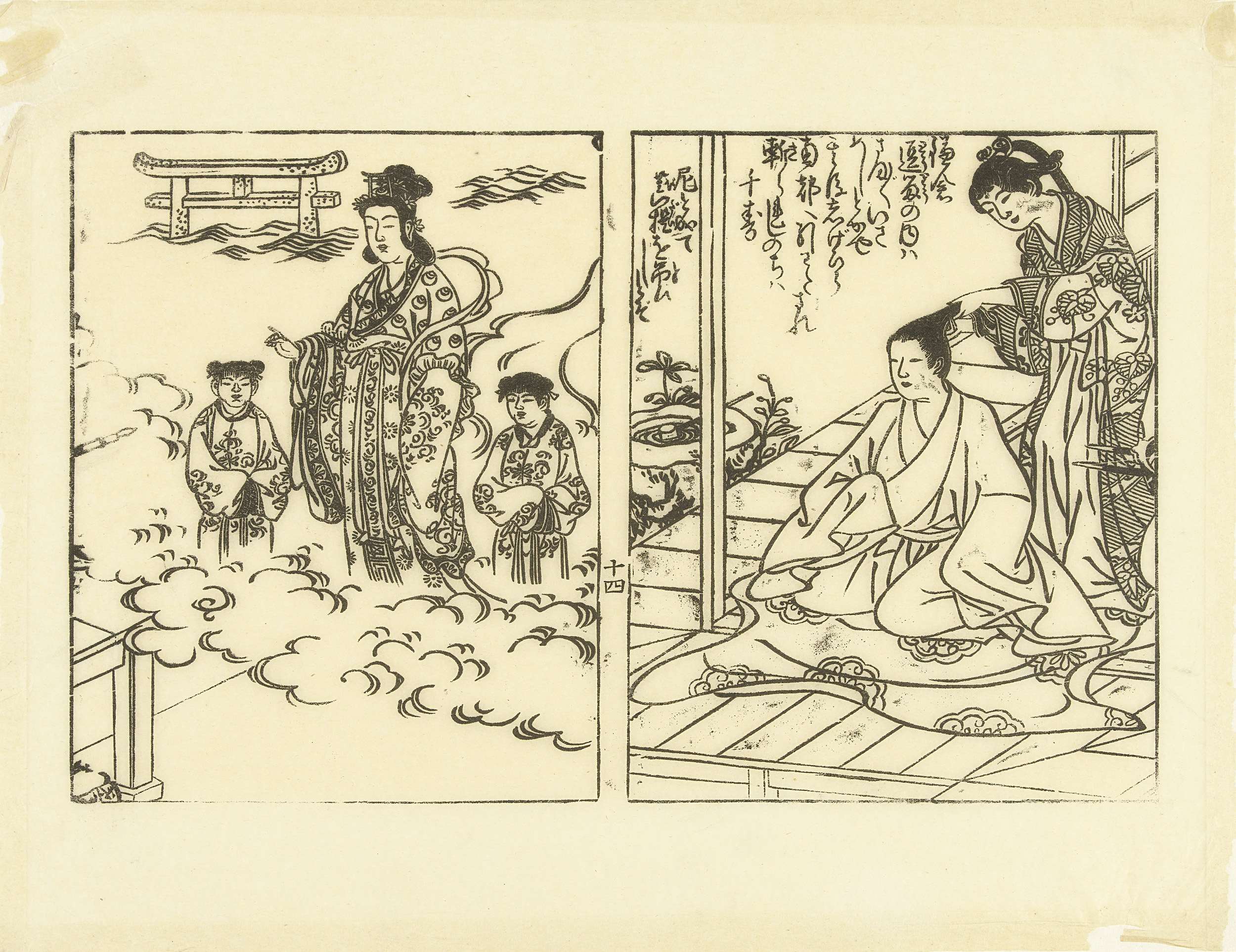 Twee achter rotsen verschuilende mannen, rechts een ...