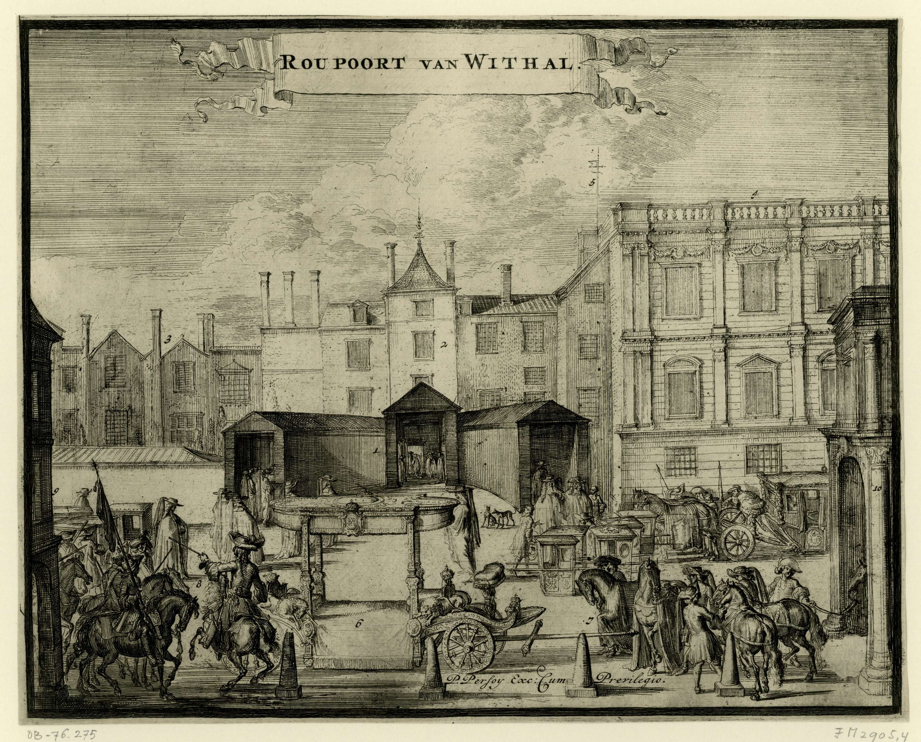 Rouwpoort opgesteld buiten het paleis te Whitehall, ...