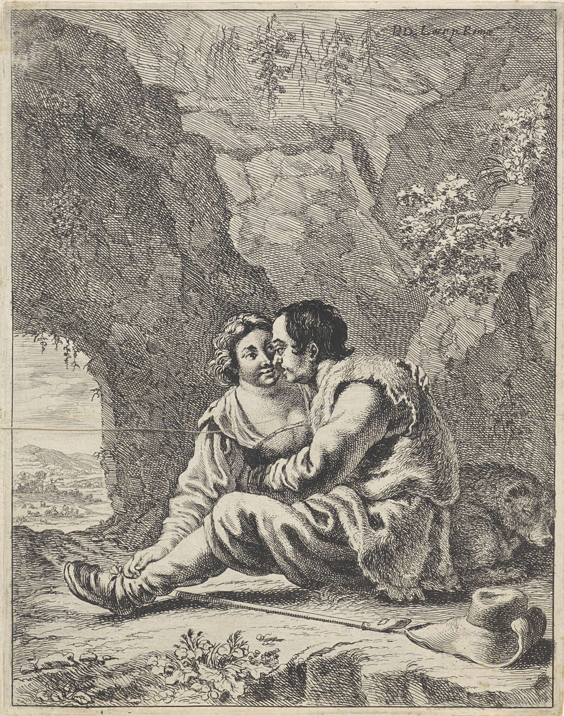 Man en vrouw in omhelzing in een grot
