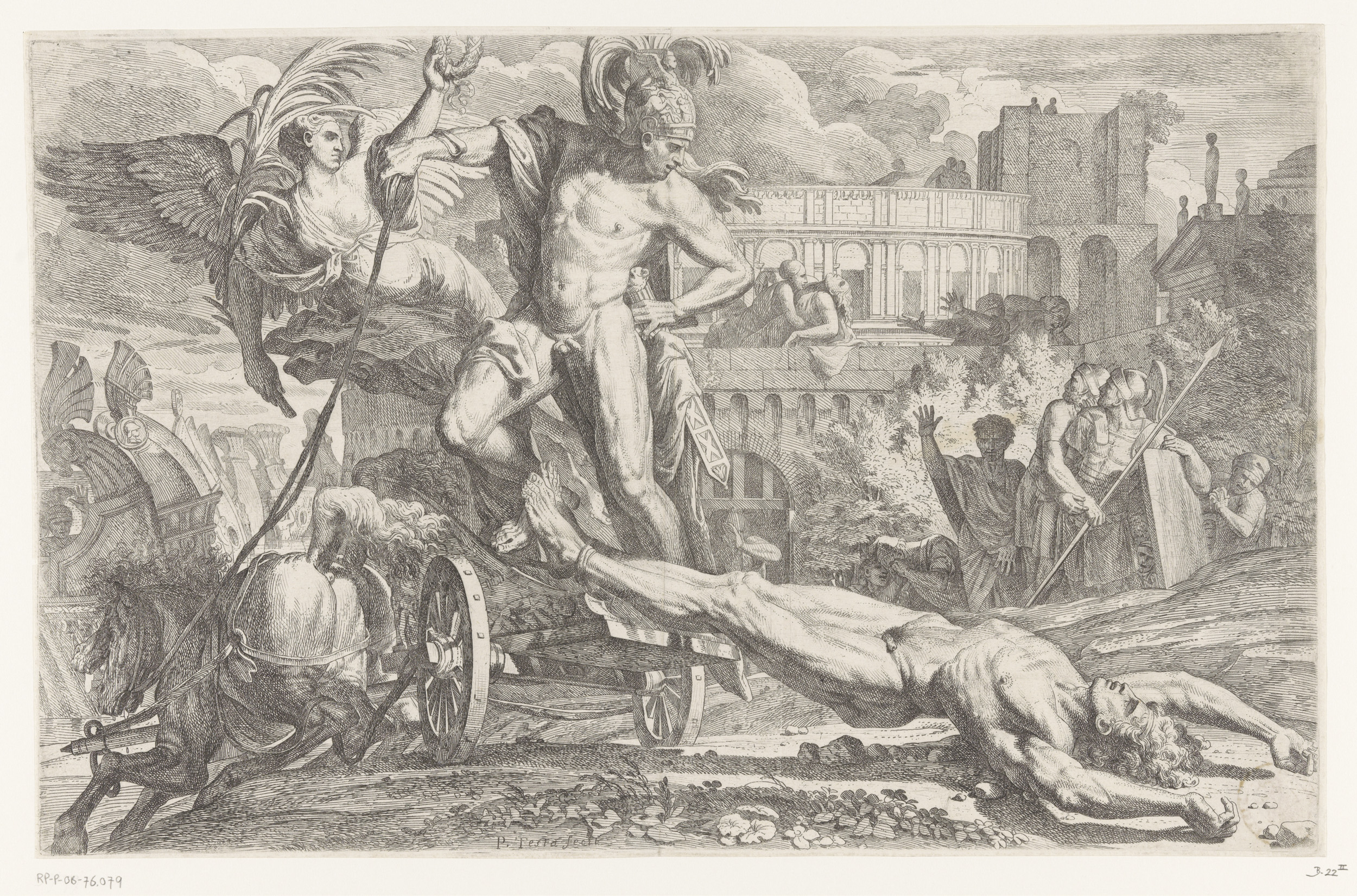 Achilles met lijk van Hector achter zijn zegewagen