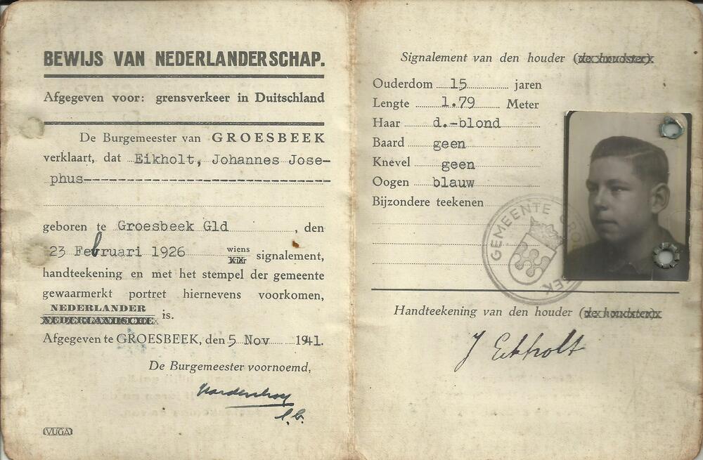 Bewijs van Nederlanderschap op naam van Eikholt J.J.