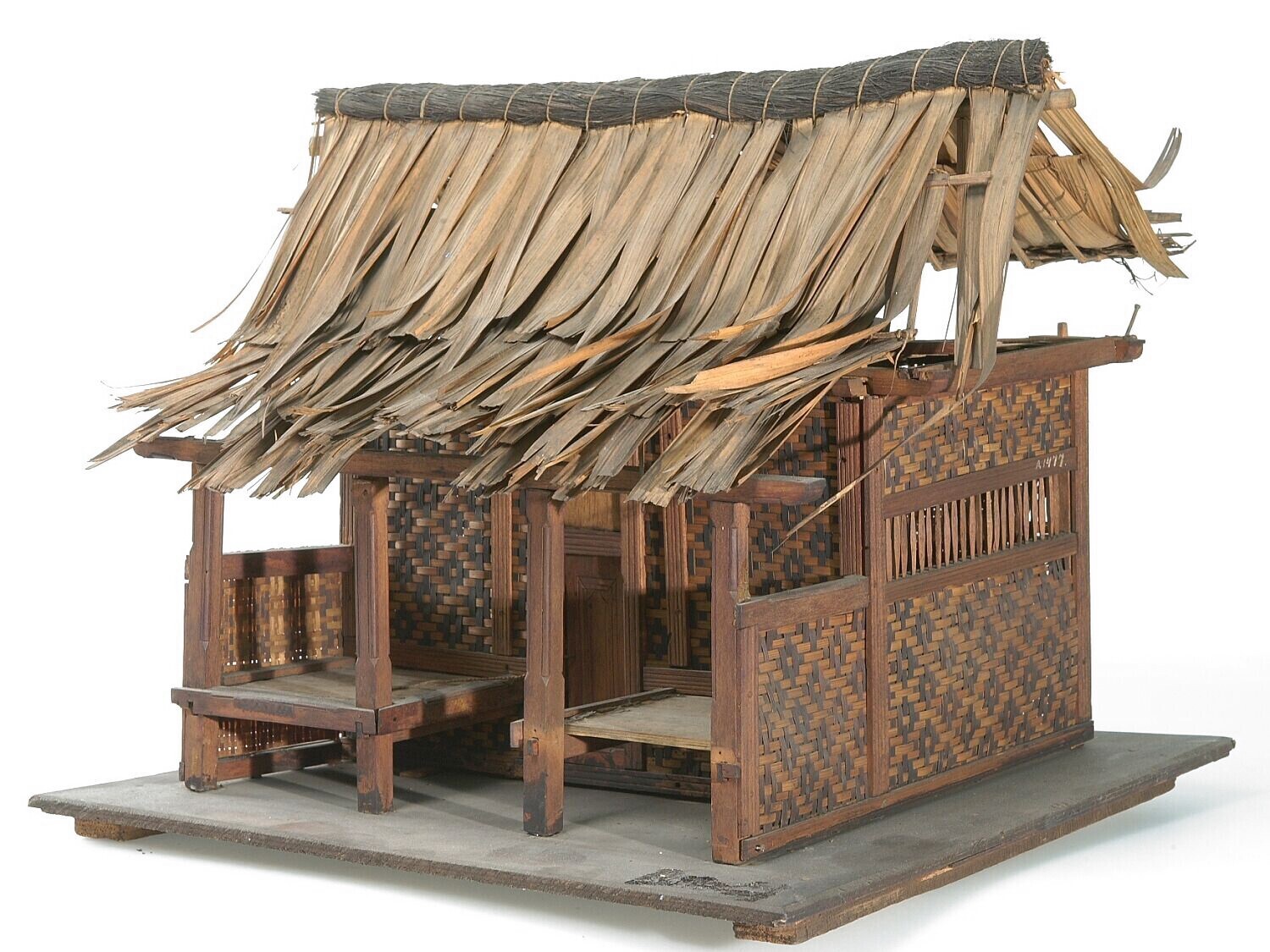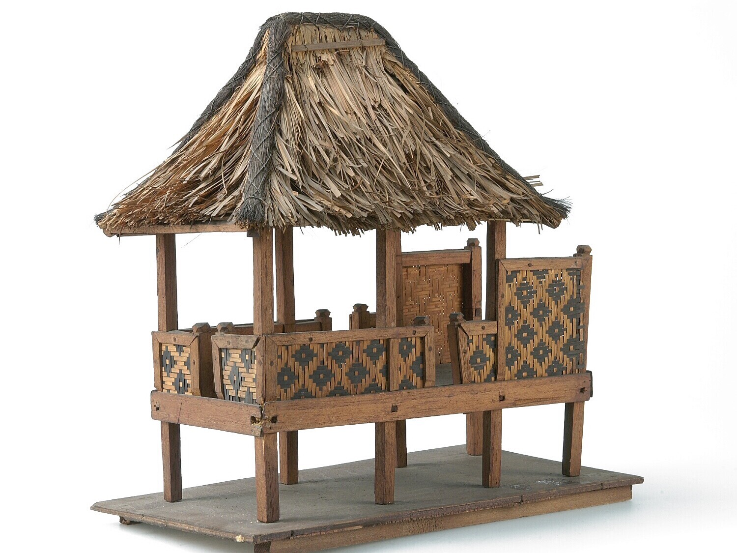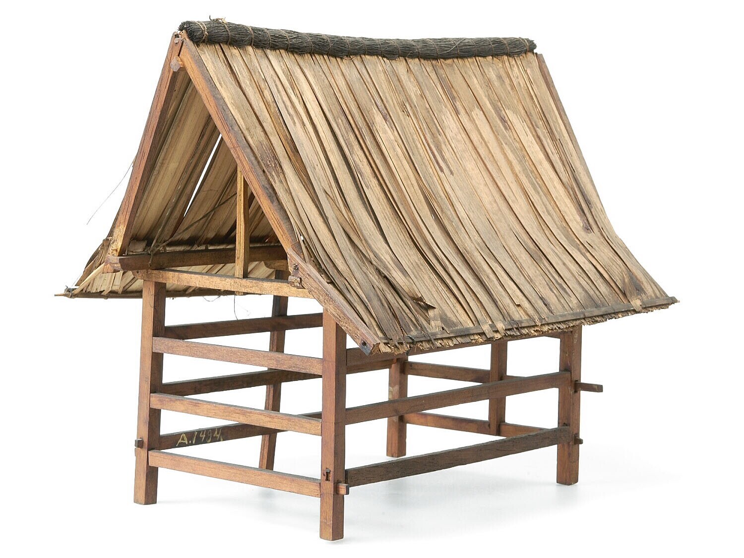 Model van een rijstschuur o.a. vervaardigd met alang...