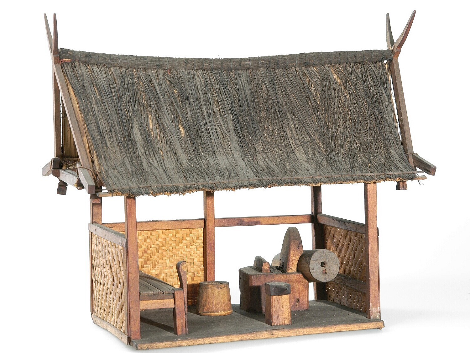 Model van een loods voor het stampen van rijst