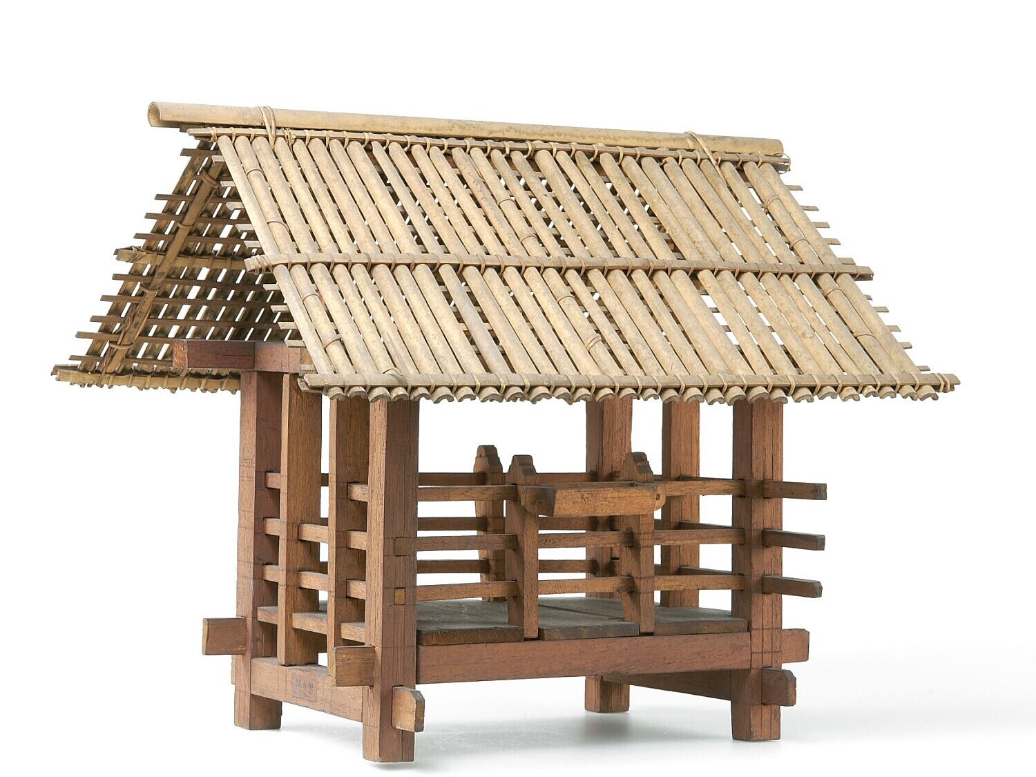Model van een rijstschuur vervaardig met hout en ala...
