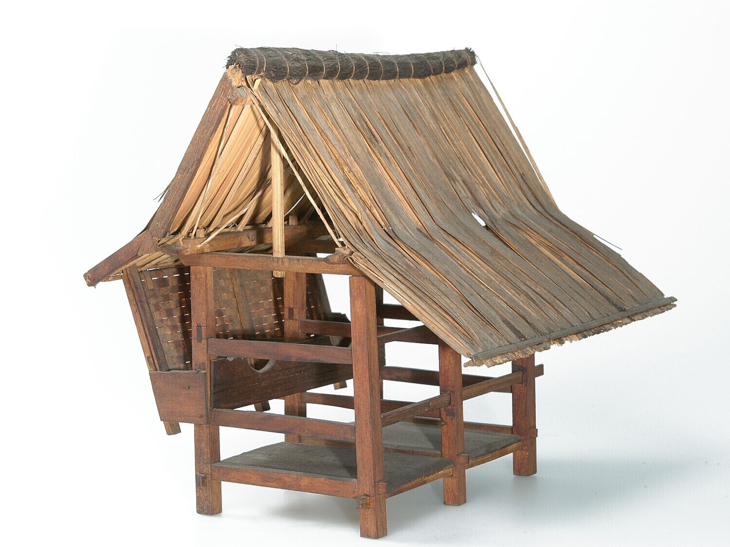 Model van een javaanse rijstschuur vervaardigd uit h...
