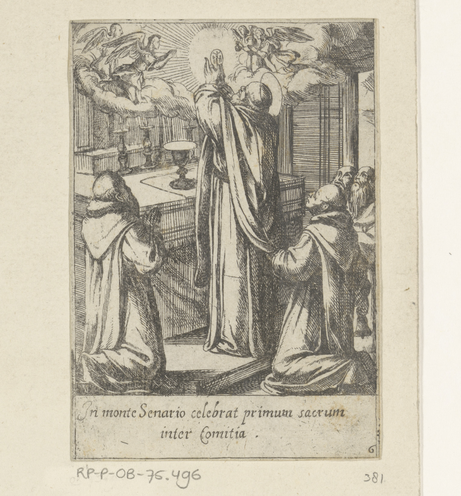 De heilige Philippus gaat voor in gebed als hoofd va...