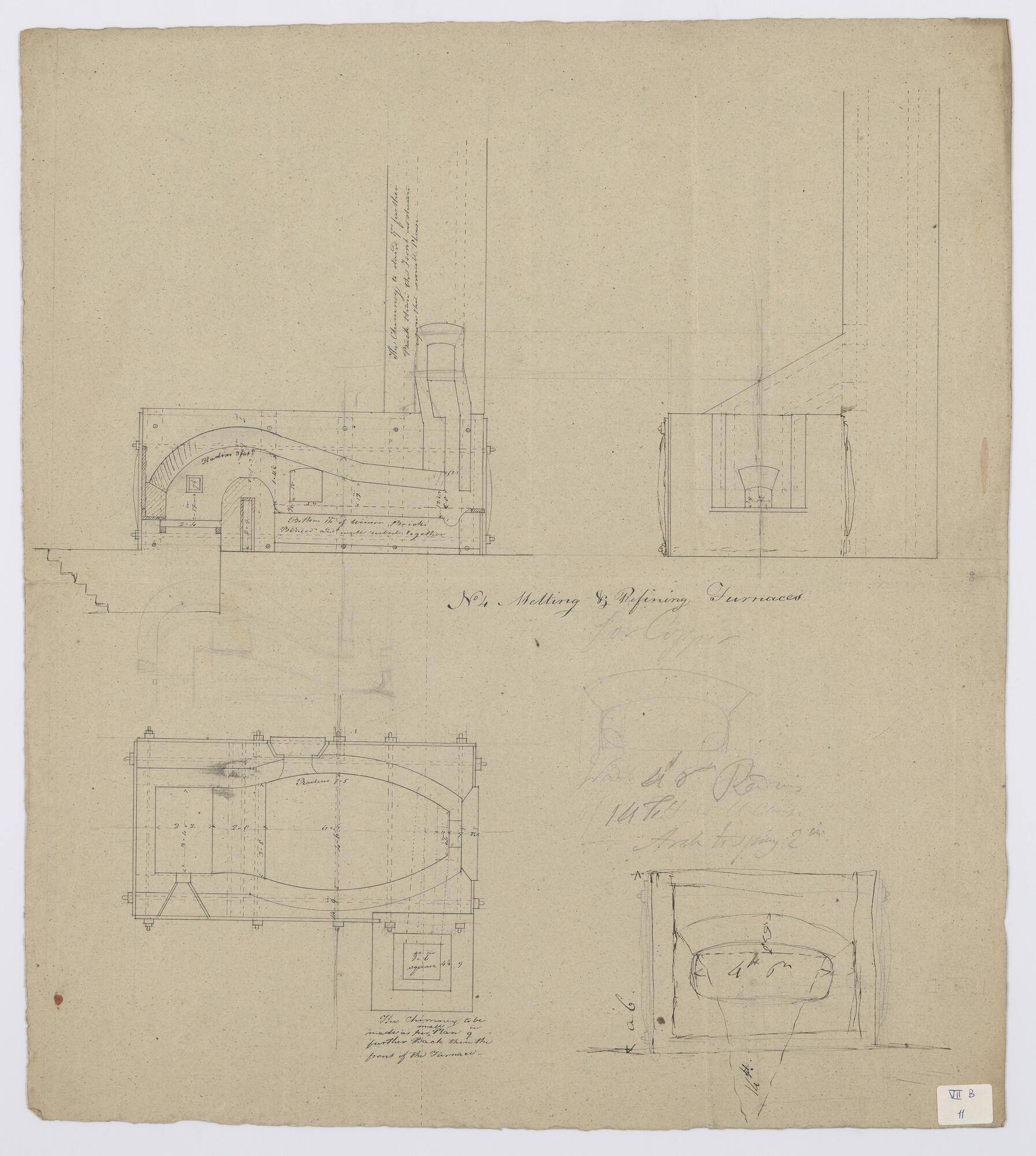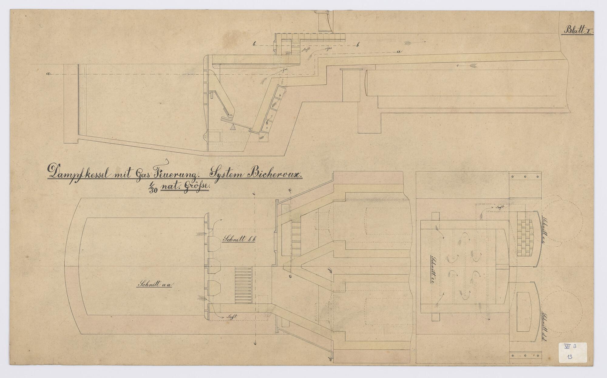 Zijaanzicht, verticale langsdoorsnede van linieschip...