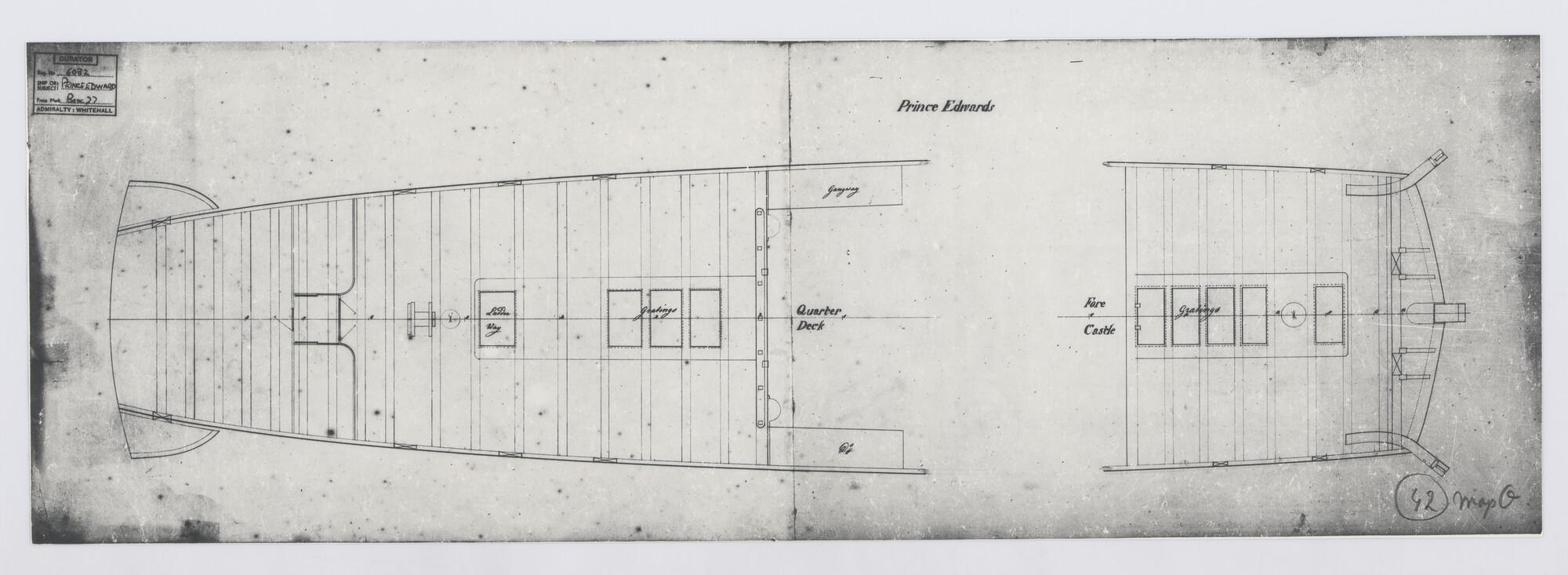 Zijaanzicht van linieschip Prince Edward (ex- Mars) ...