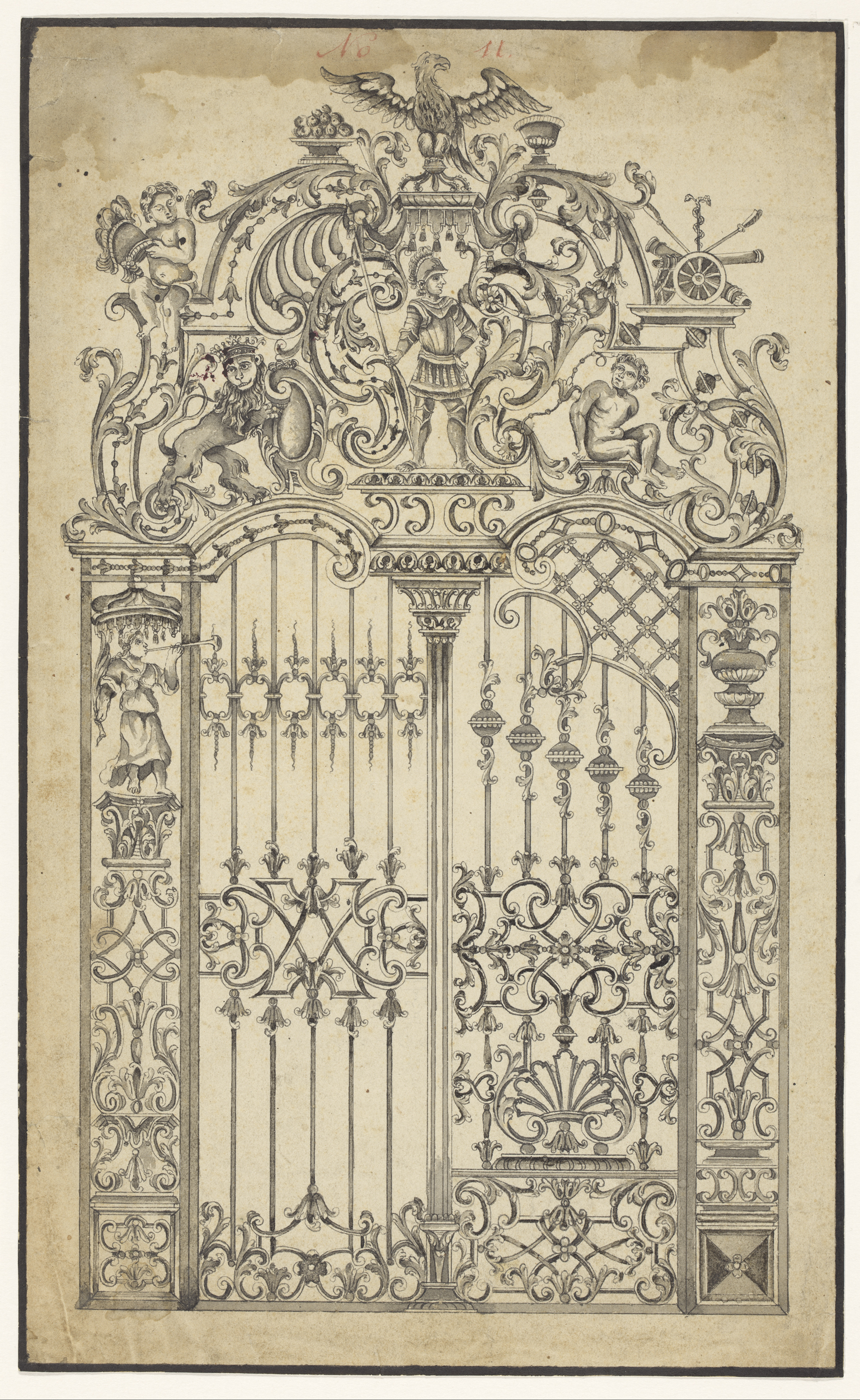 Ontwerp voor een smeedijzeren poort, met alternatief...