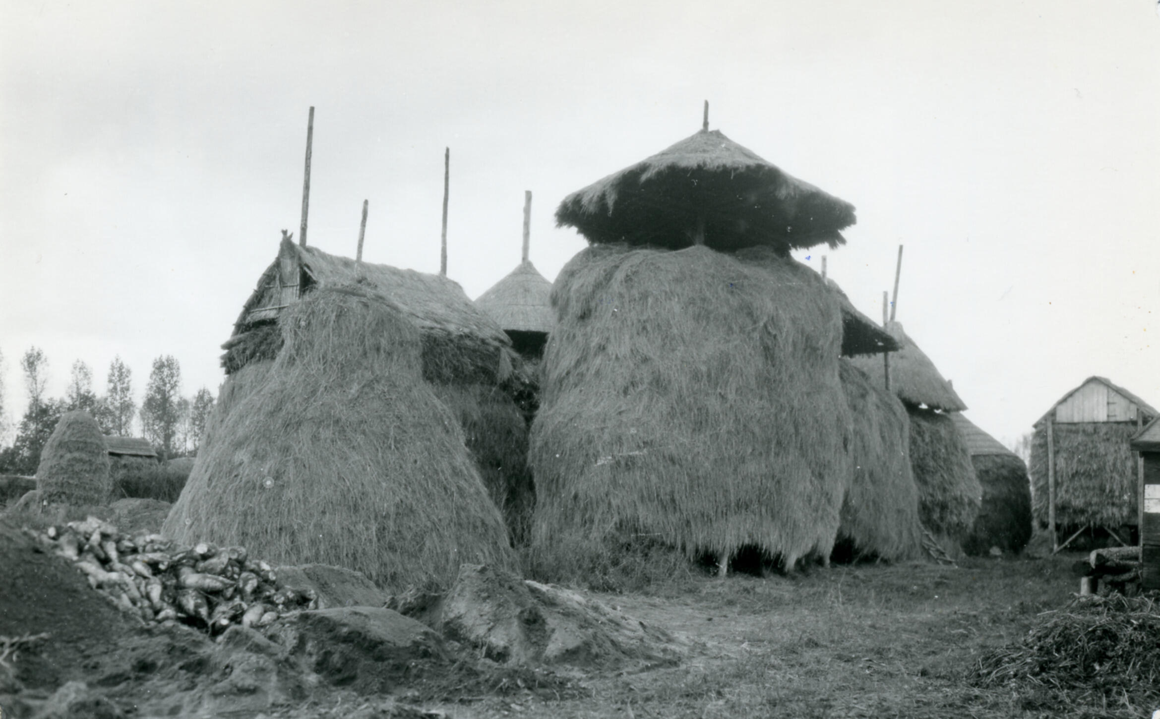 Twee hooibergen, gemeente Zutphen, 1935 (zwart-wit f...