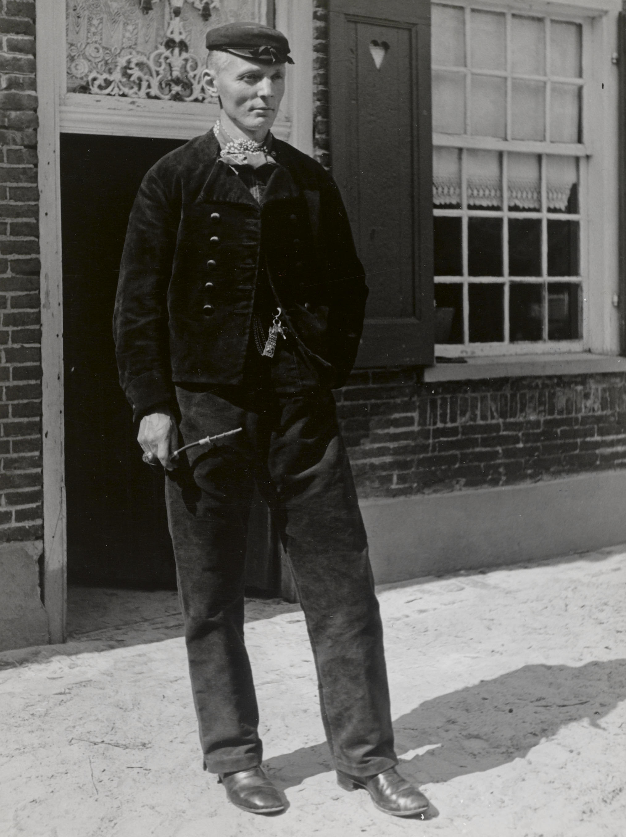 Man in werkdracht, Staphorst, 1944 (zwart-wit foto)