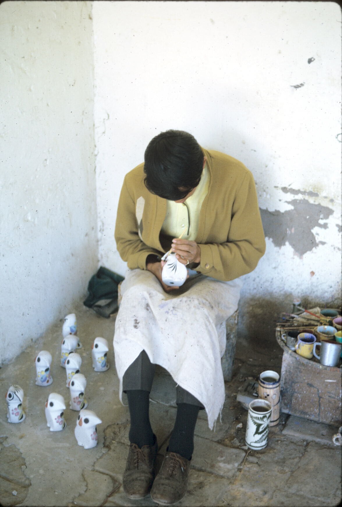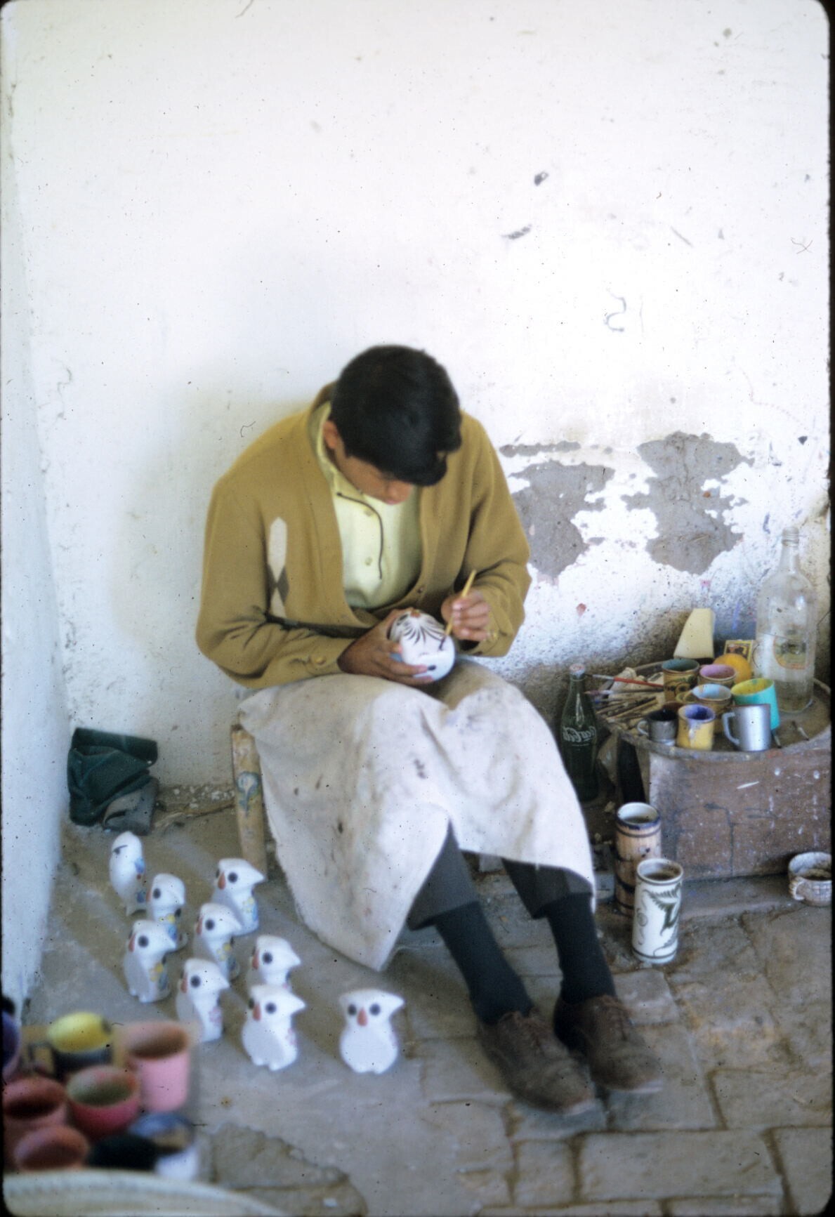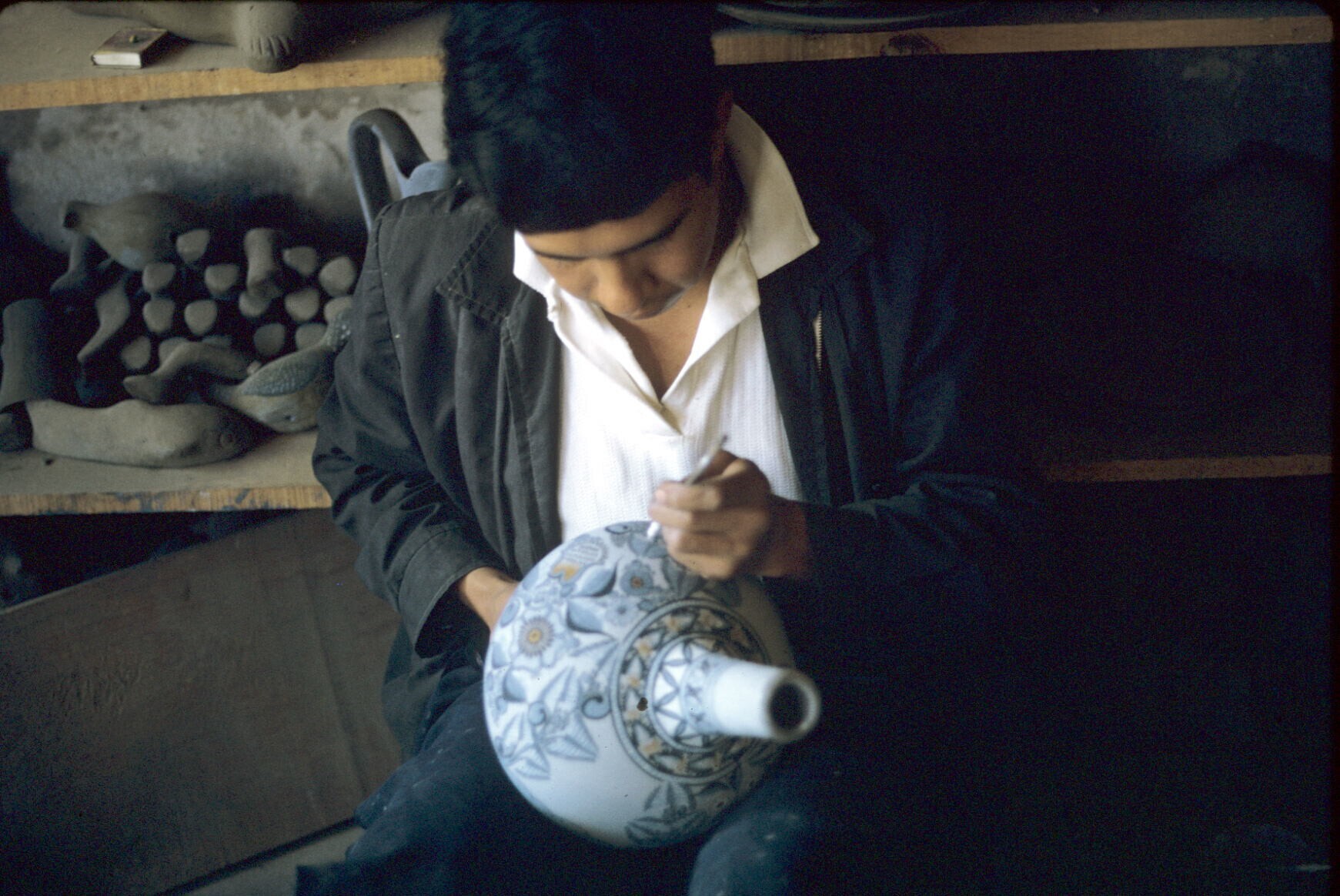 pottenbakker Amado Calván, aardewerk beschilderend